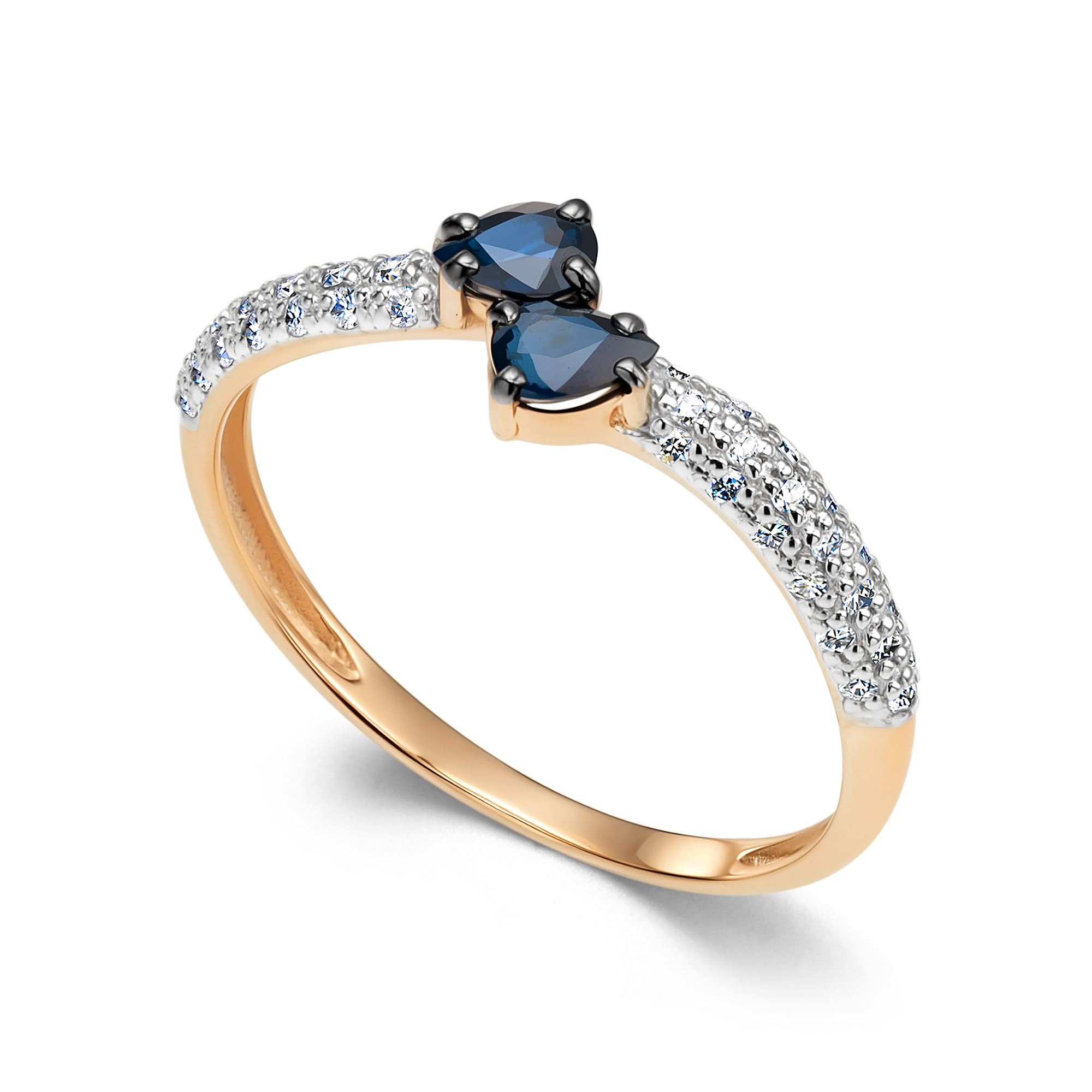 Золотое кольцо АЛЬКОР с бриллиантом и сапфиром 16564-102