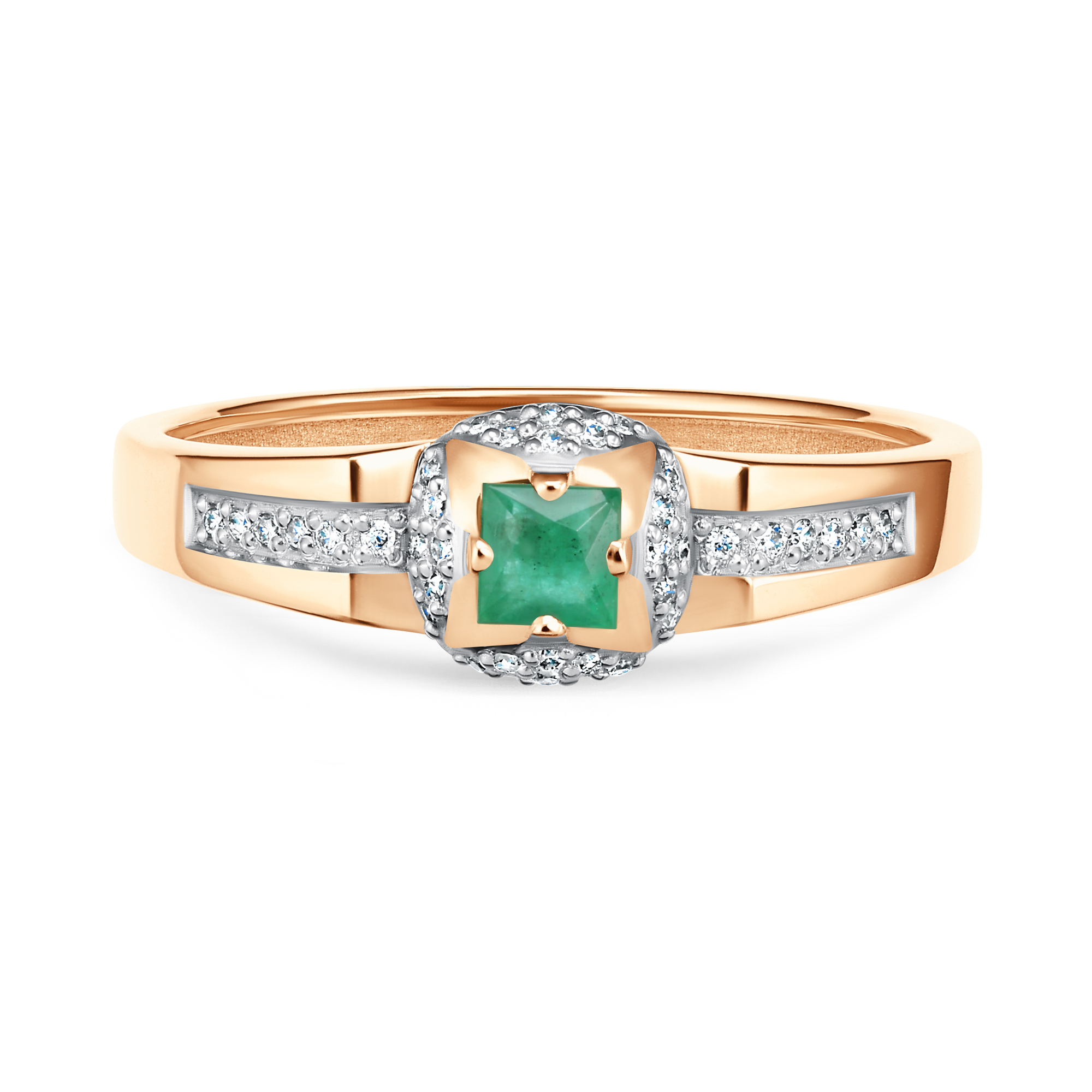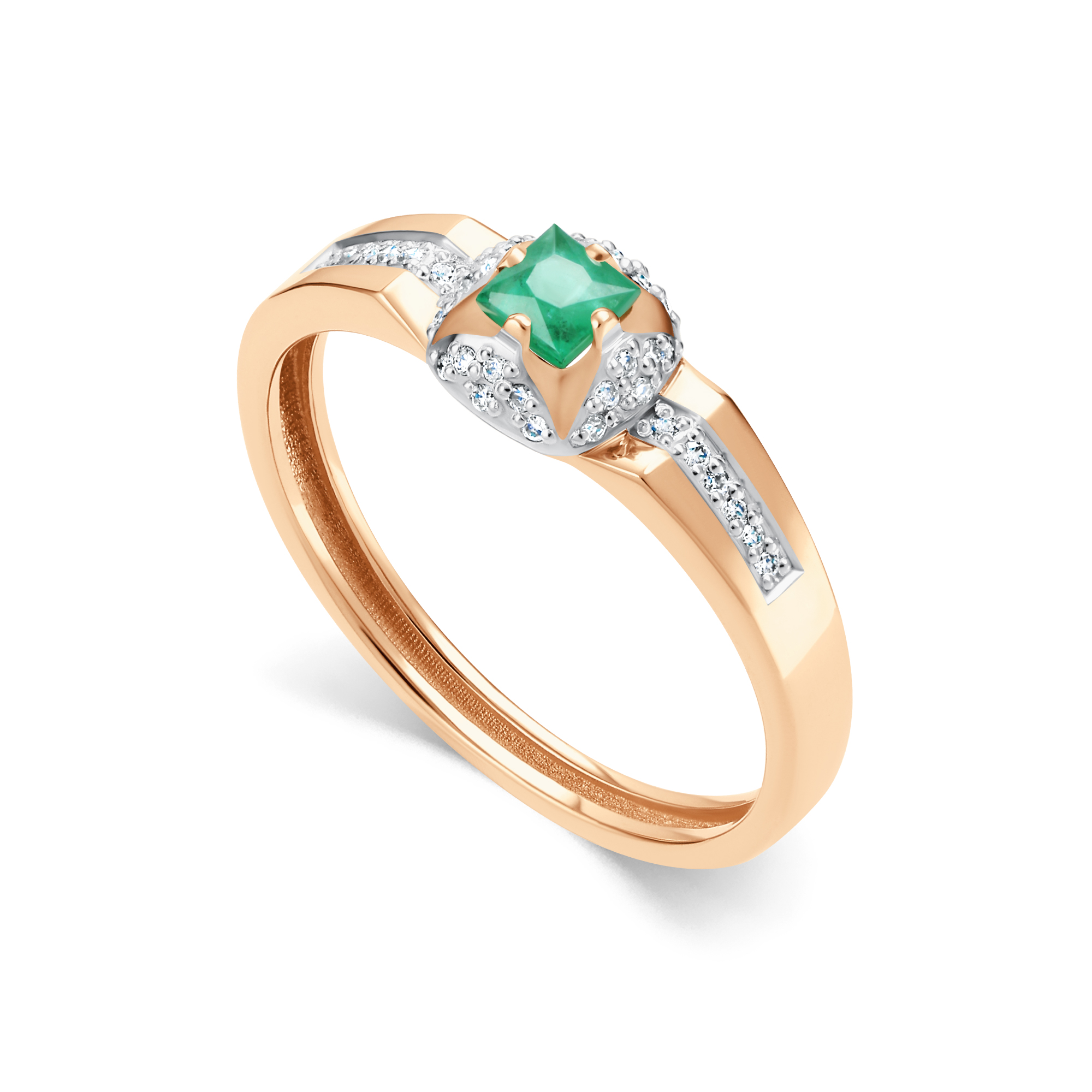 Золотое кольцо АЛЬКОР с бриллиантом и изумрудом 16691-101