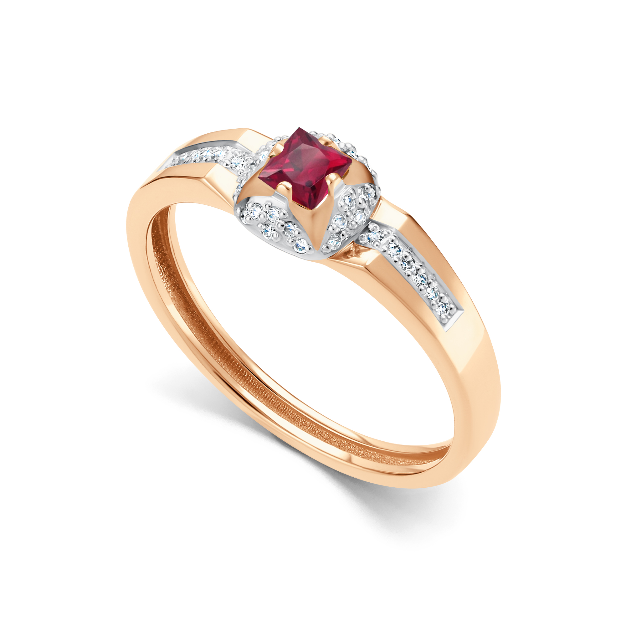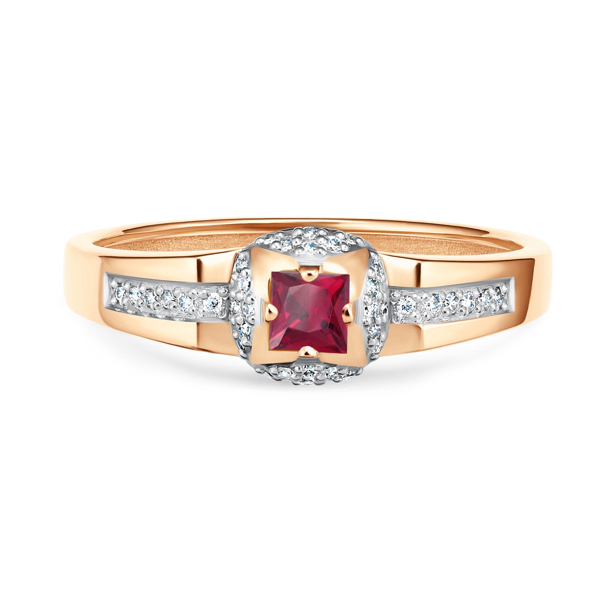 Золотое кольцо АЛЬКОР с бриллиантом и рубином 16691-103
