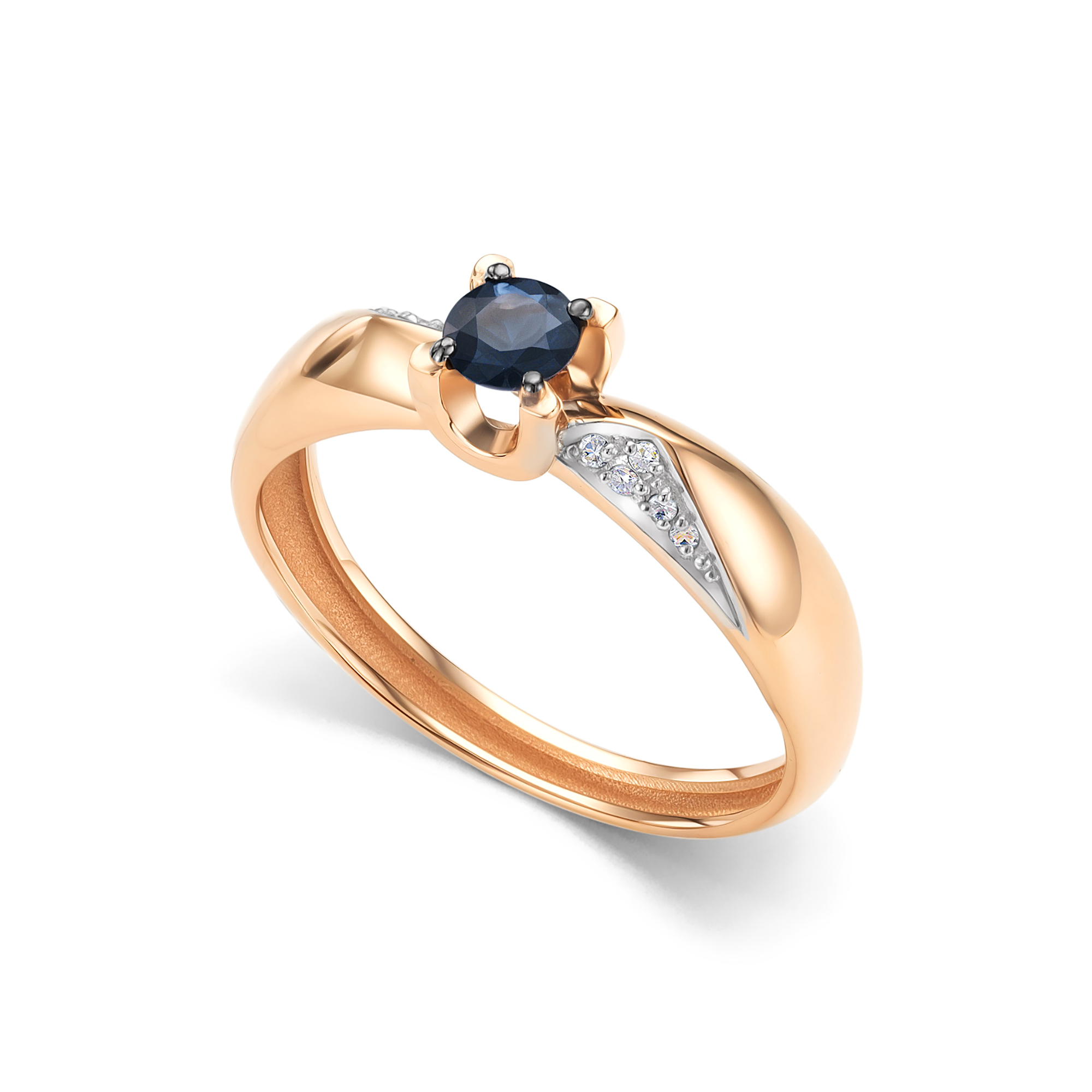 Золотое кольцо АЛЬКОР с бриллиантом и сапфиром 16897-102