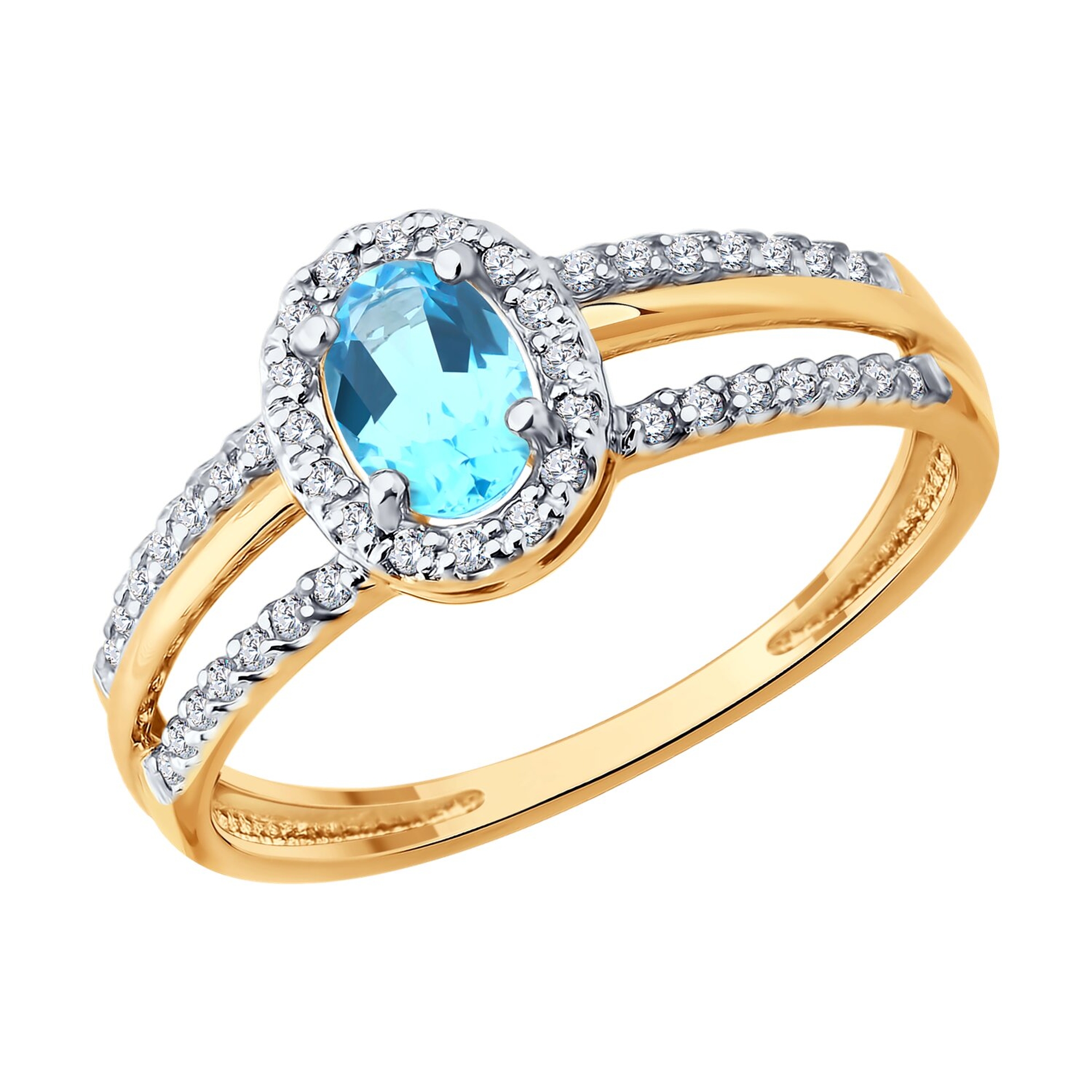Золотое кольцо SOKOLOV с топазом и фианитом 717357