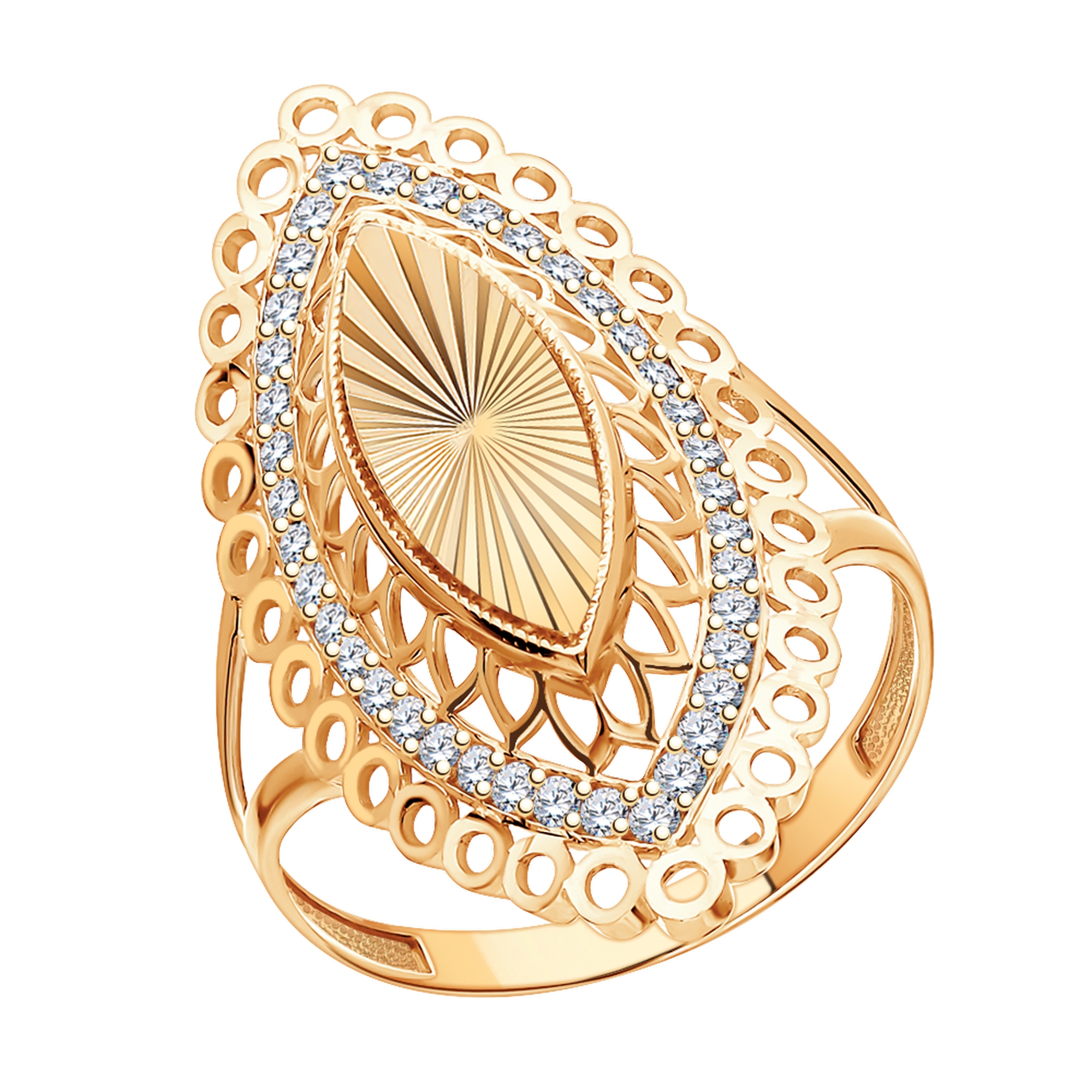 Кольцо из золочёного серебра Atoll с фианитом ЗС10660аз-925