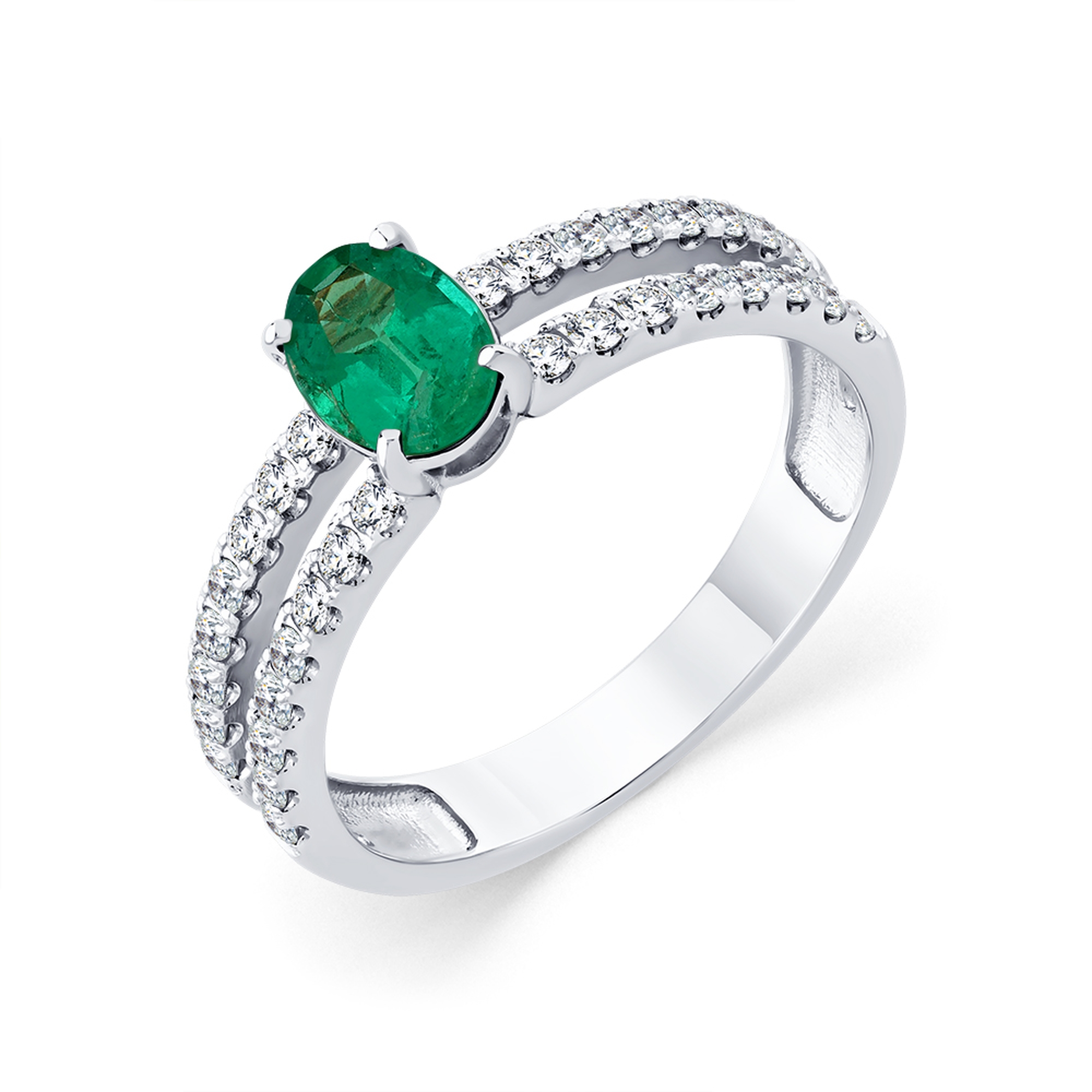 Кольцо из белого золота Мастер Бриллиант с бриллиантом и изумрудом 05M1-209342-00-01