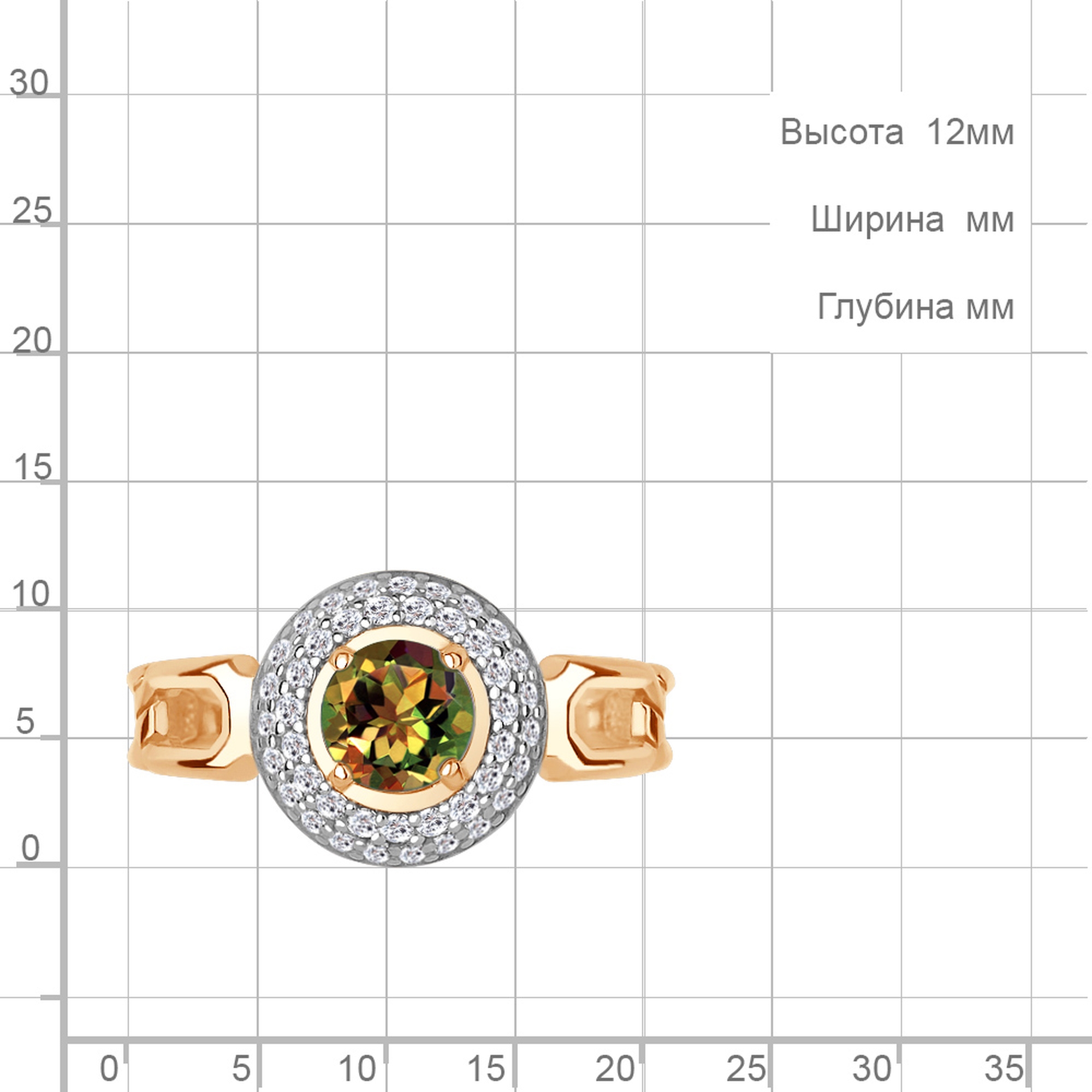 Длина декоративного элемента 12 мм Ширина декоративного элемента 12 мм Ширина верхней шинки 5 мм Ширина нижней шинки 2 мм Размер камня 6*6 мм