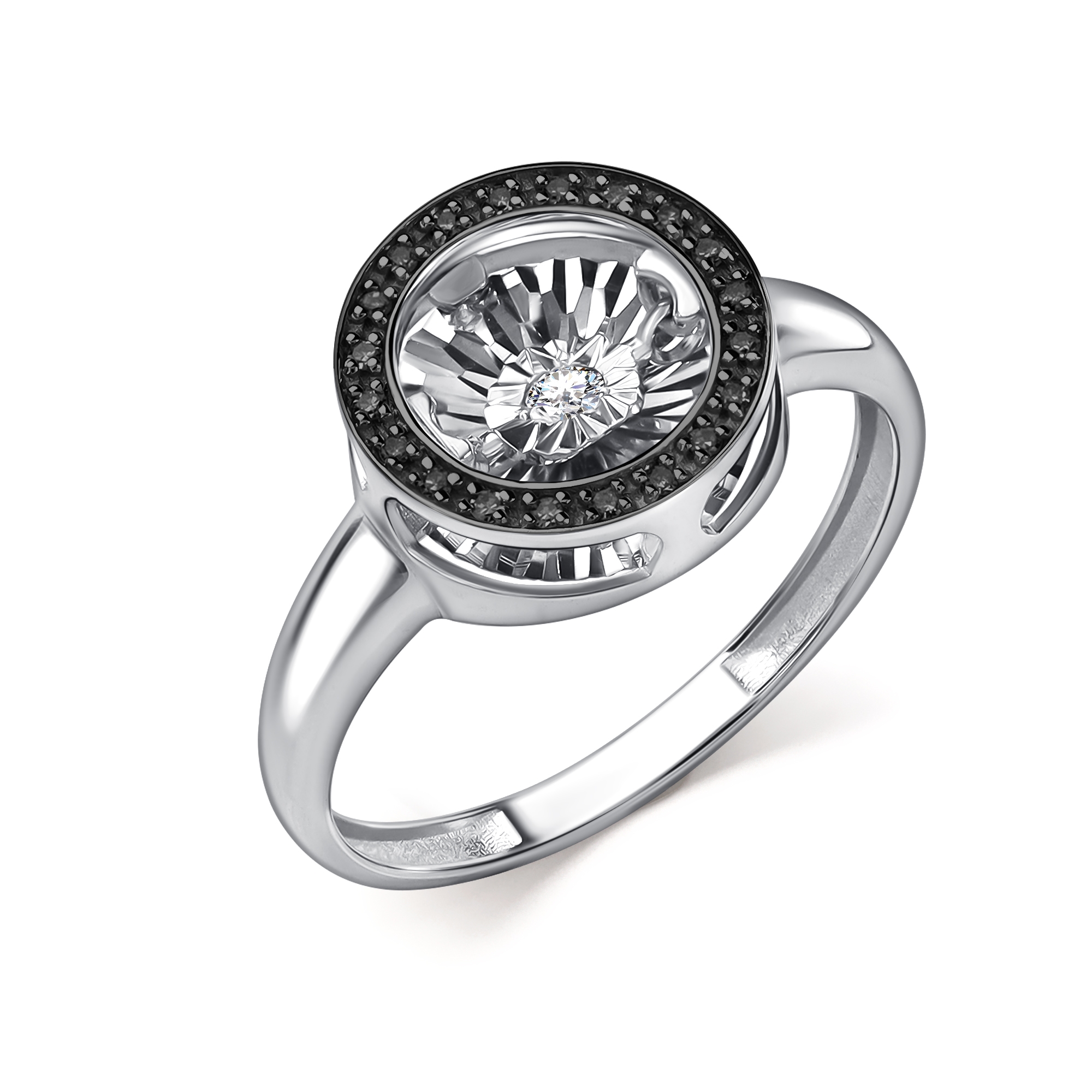 Кольцо из белого золота GRIGORIEV с бриллиантом и чёрным бриллиантом Г01-12-5478-13-00