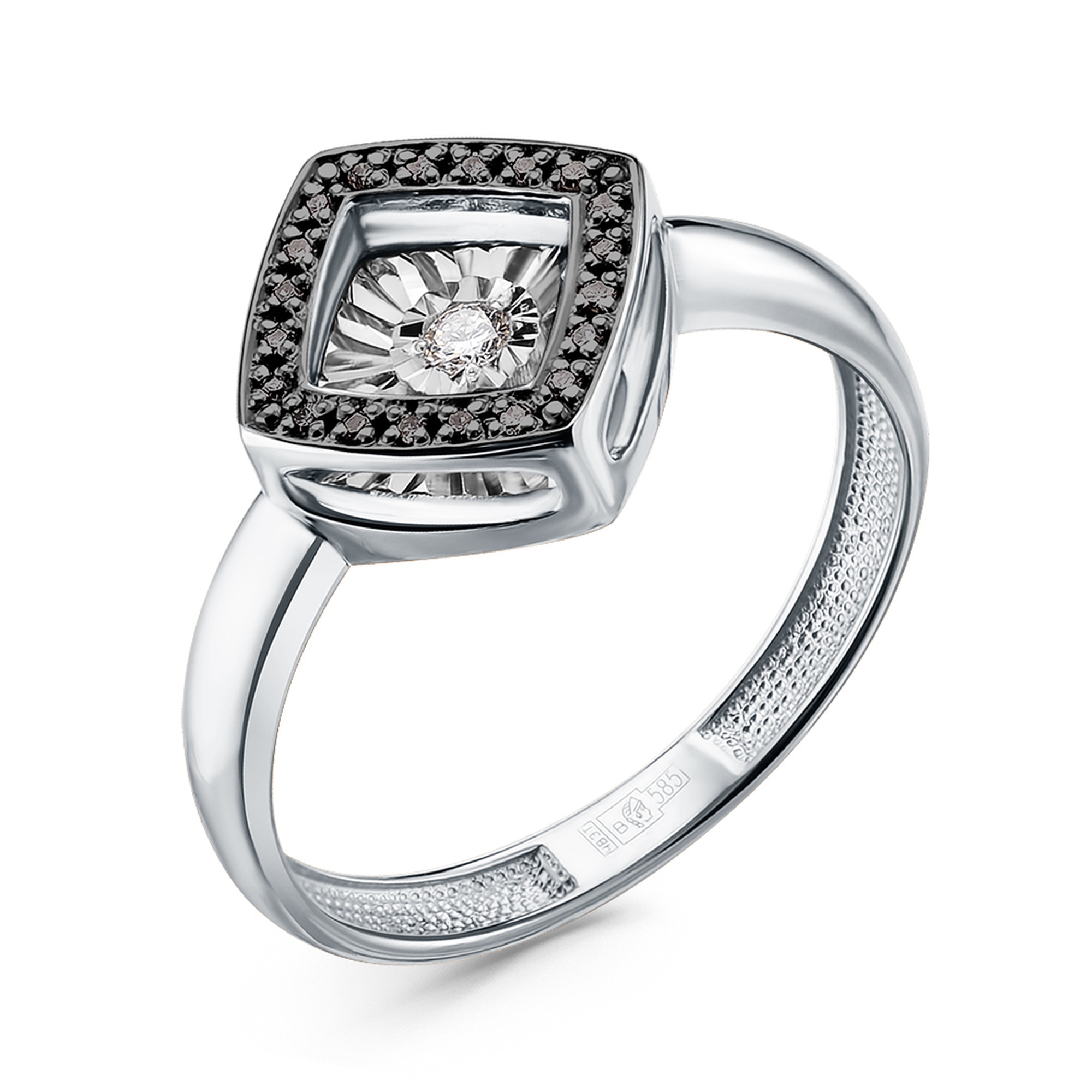 Кольцо из белого золота GRIGORIEV с бриллиантом и чёрным бриллиантом Г01-12-5499-13-00
