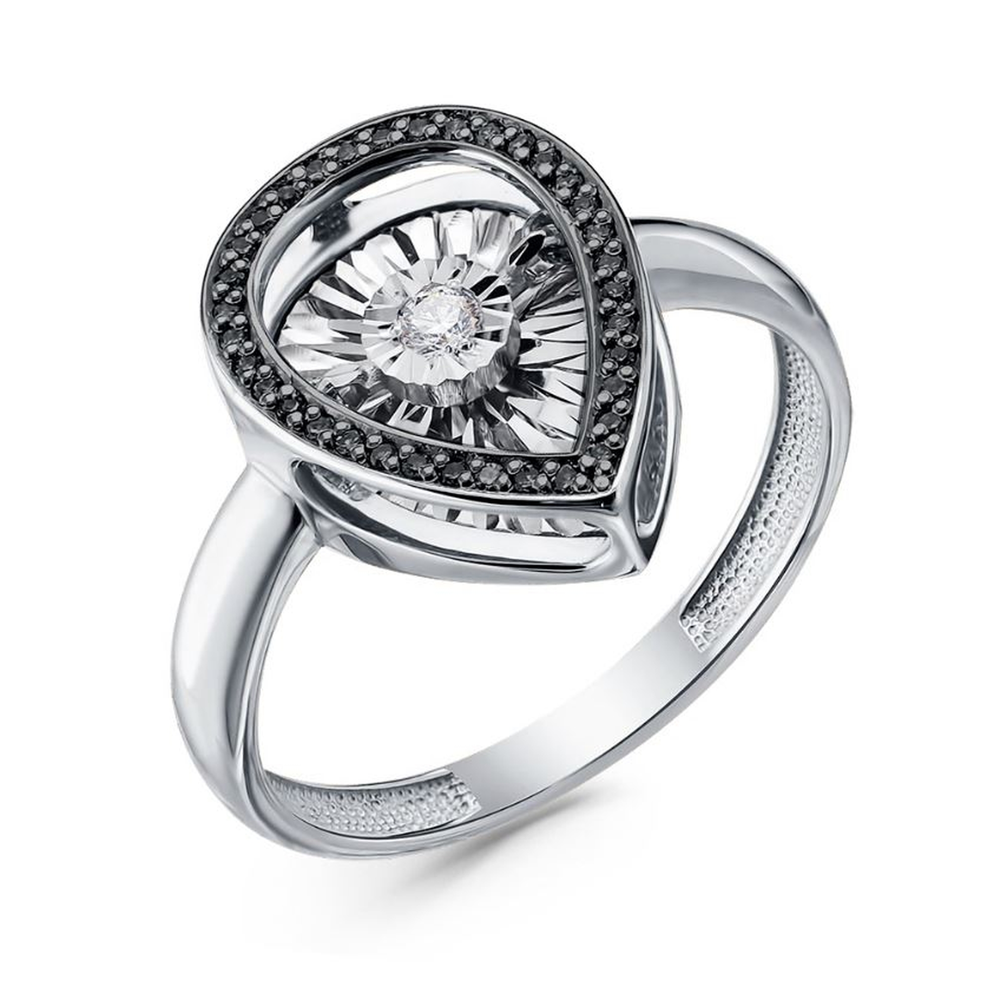 Кольцо из белого золота GRIGORIEV с бриллиантом и чёрным бриллиантом Г01-12-5497-13-00