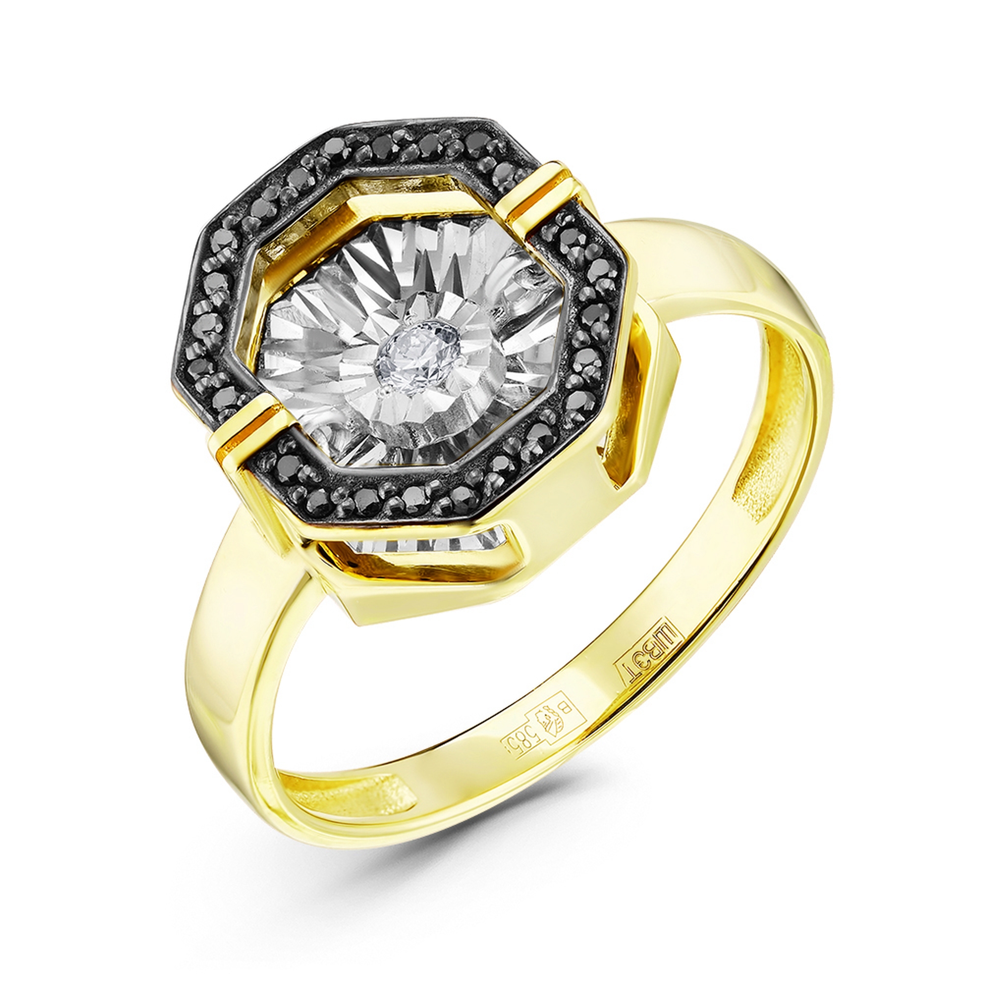 Кольцо из лимонного золота GRIGORIEV с бриллиантом и чёрным бриллиантом Г01-13-5630-13-00