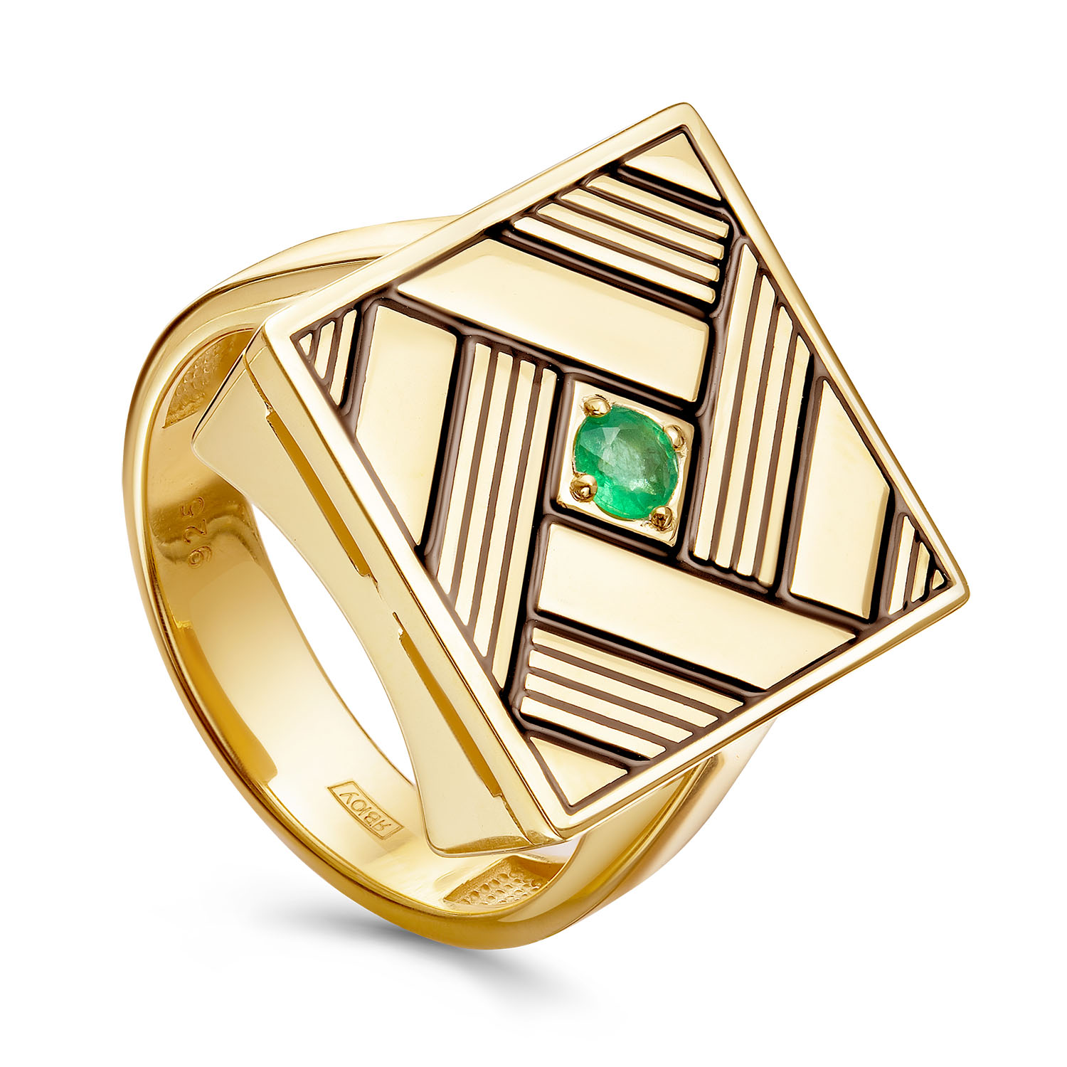 Кольцо из лимонного серебра KABAROVSKY с изумрудом и эмалью K11-945-1202