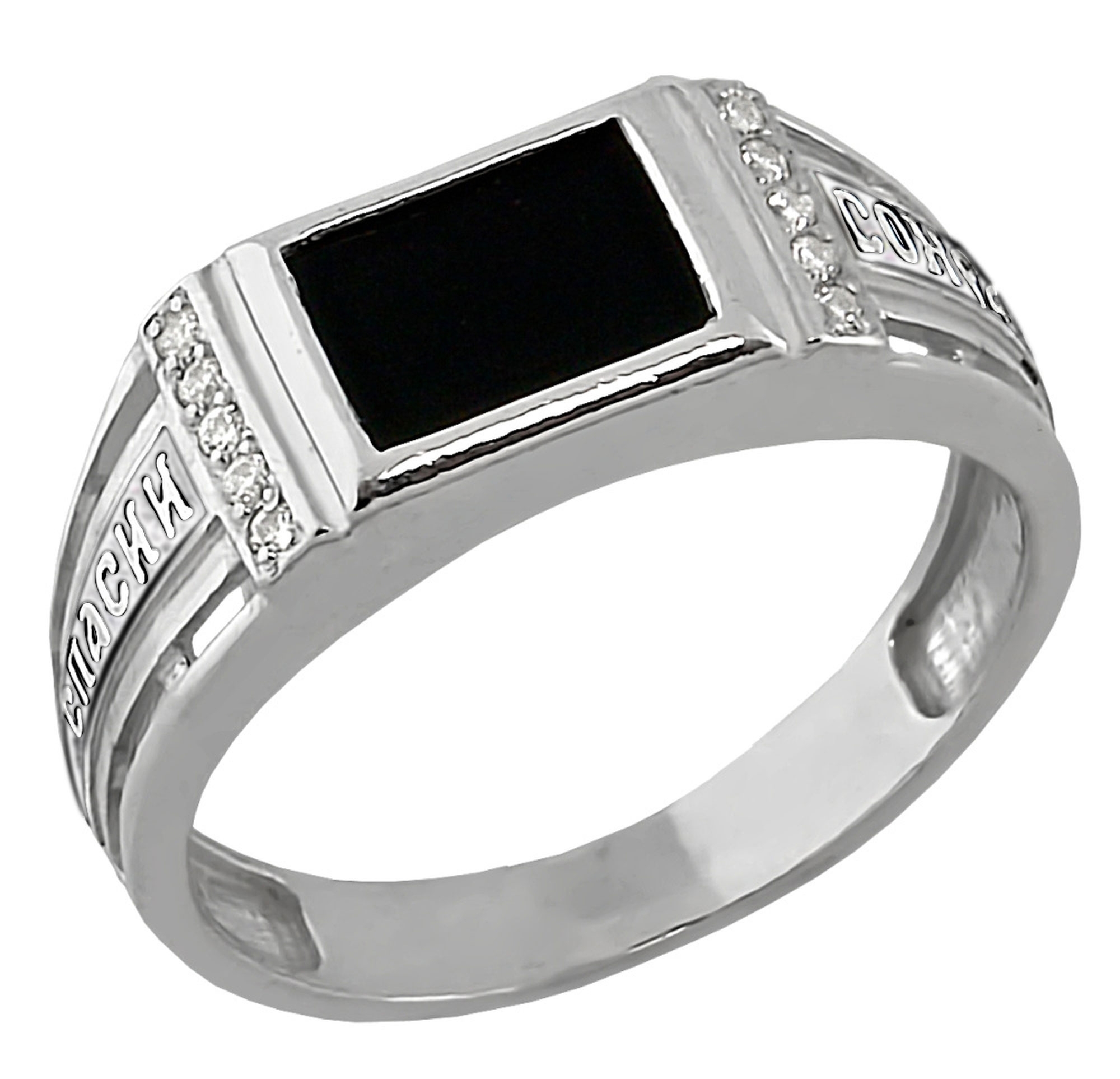 Кольцо из черненого серебра Высоковы 585 с фианитом и ониксом КП-70-Ч