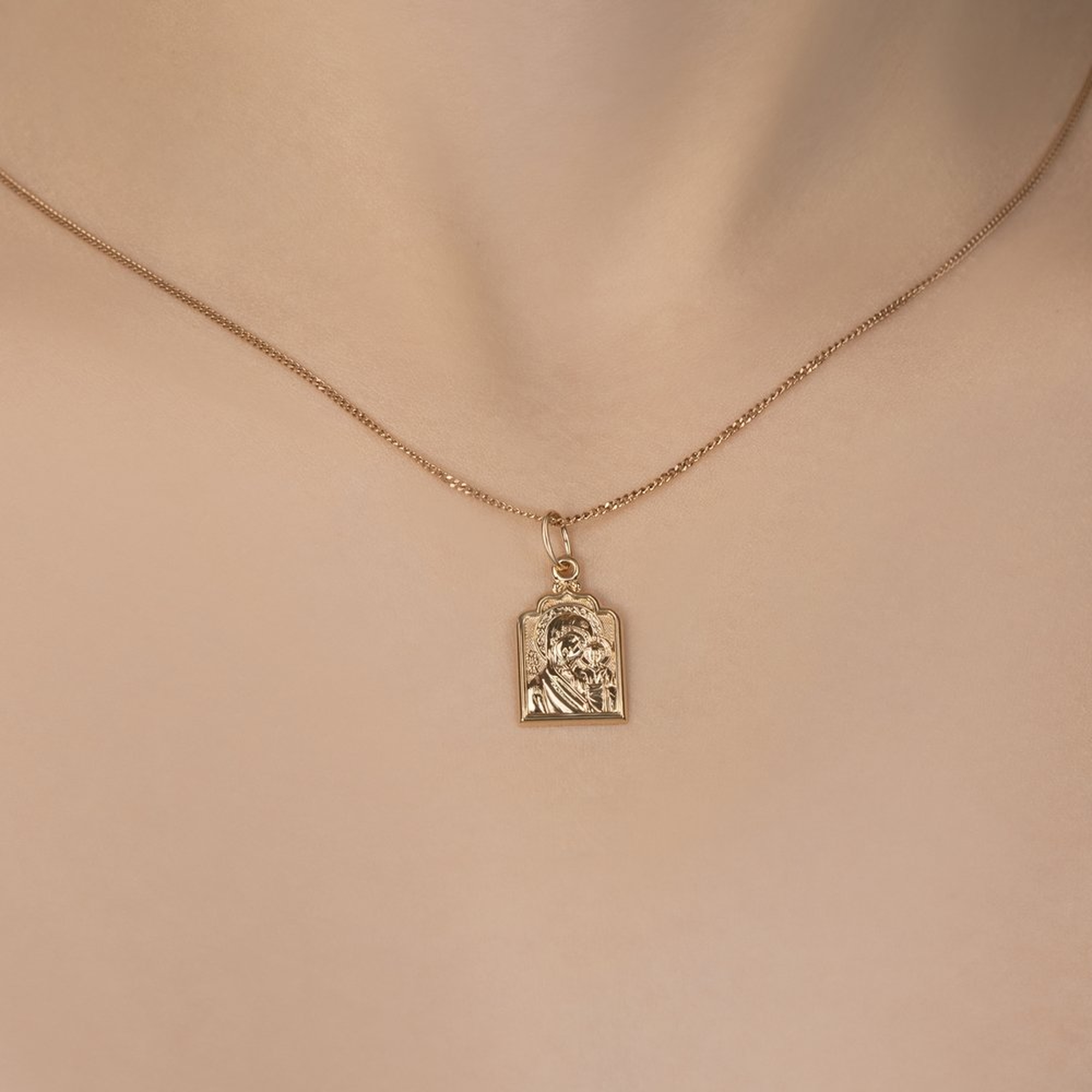 Золотая подвеска-иконка Божией Матери Казанская Золотые узоры 20-0148