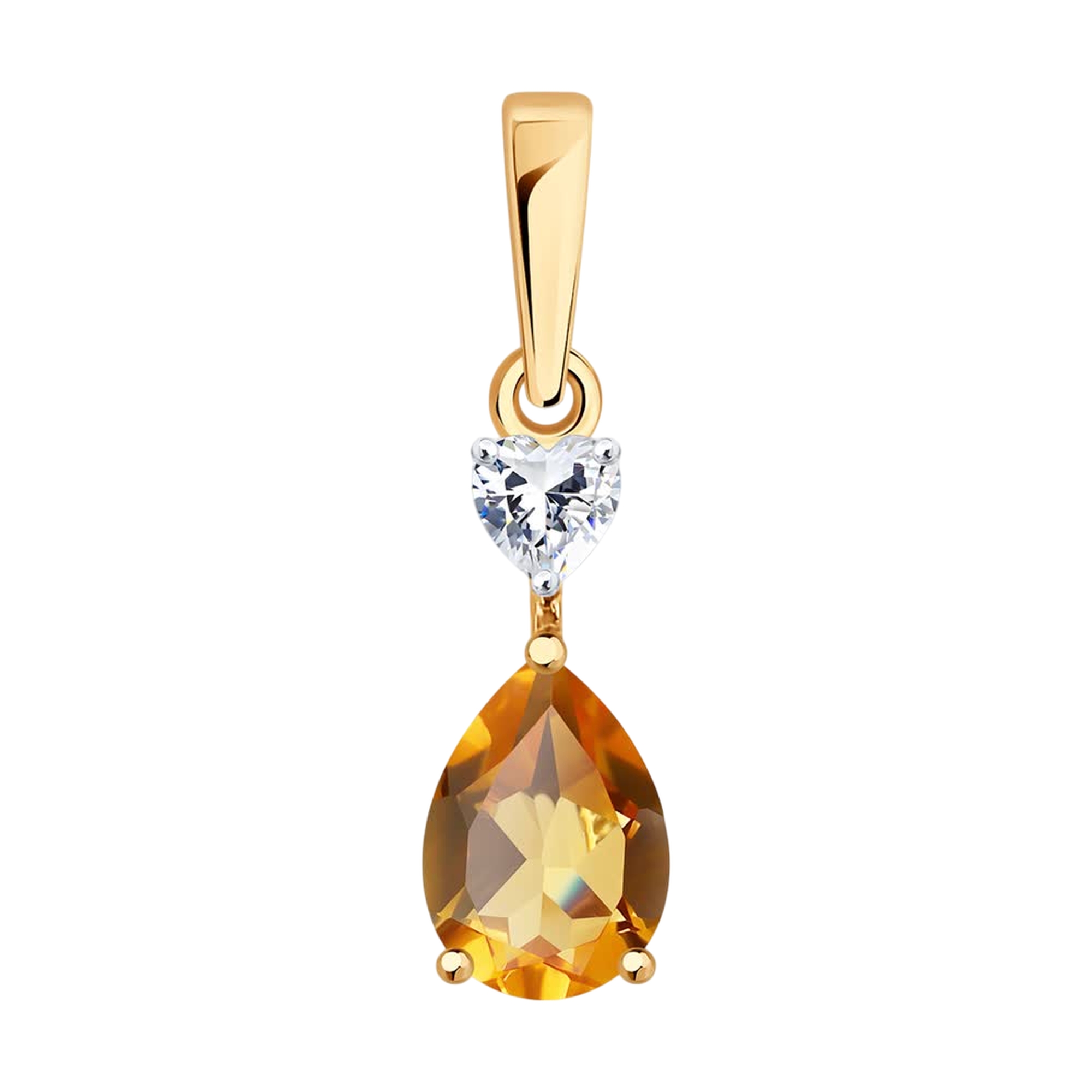 Золотая подвеска SOKOLOV с фианитом и цитрином 733064