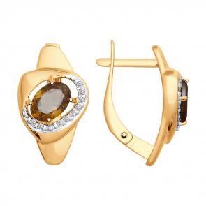 Серьги из золочёного серебра SOKOLOV с фианитом и раухтопазом 92021657