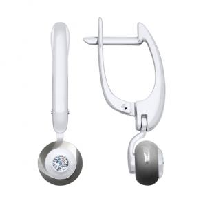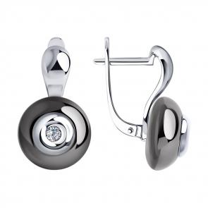 Серьги из белого золота SOKOLOV с бриллиантом и керамикой 6025084