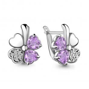 Серебряные серьги AQUAMARINE с фианитом и аметистом А4715604А