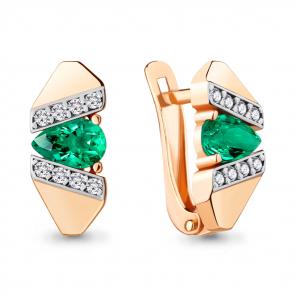 Серьги из золочёного серебра AQUAMARINE с фианитом и гидротермальным изумрудом А48449Г-п