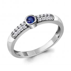 Серебряные серьги AQUAMARINE с фианитом и гидротермальным сапфиром А48636АБ