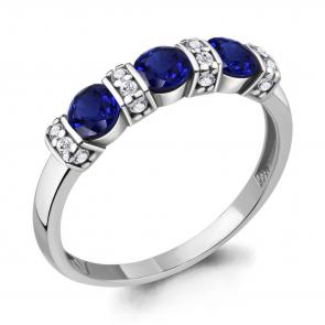 Серебряные серьги AQUAMARINE с фианитом и гидротермальным сапфиром А48826АБ