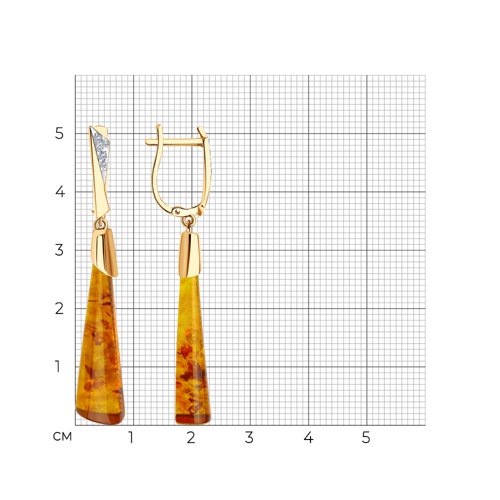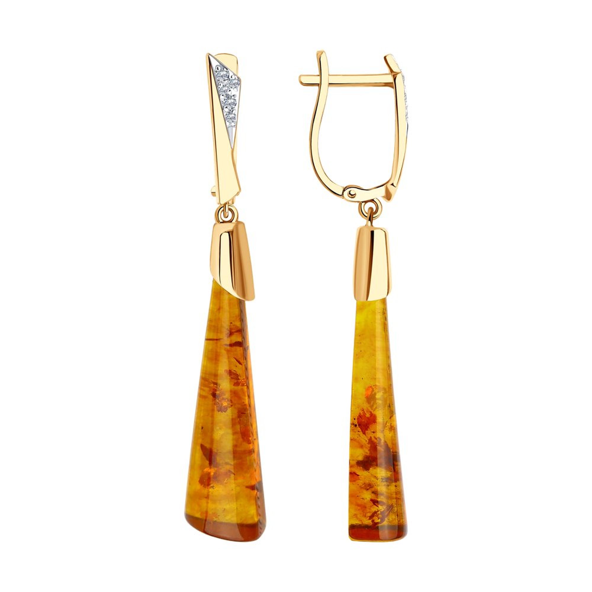 Золотые серьги SOKOLOV с фианитом и янтарём 727642