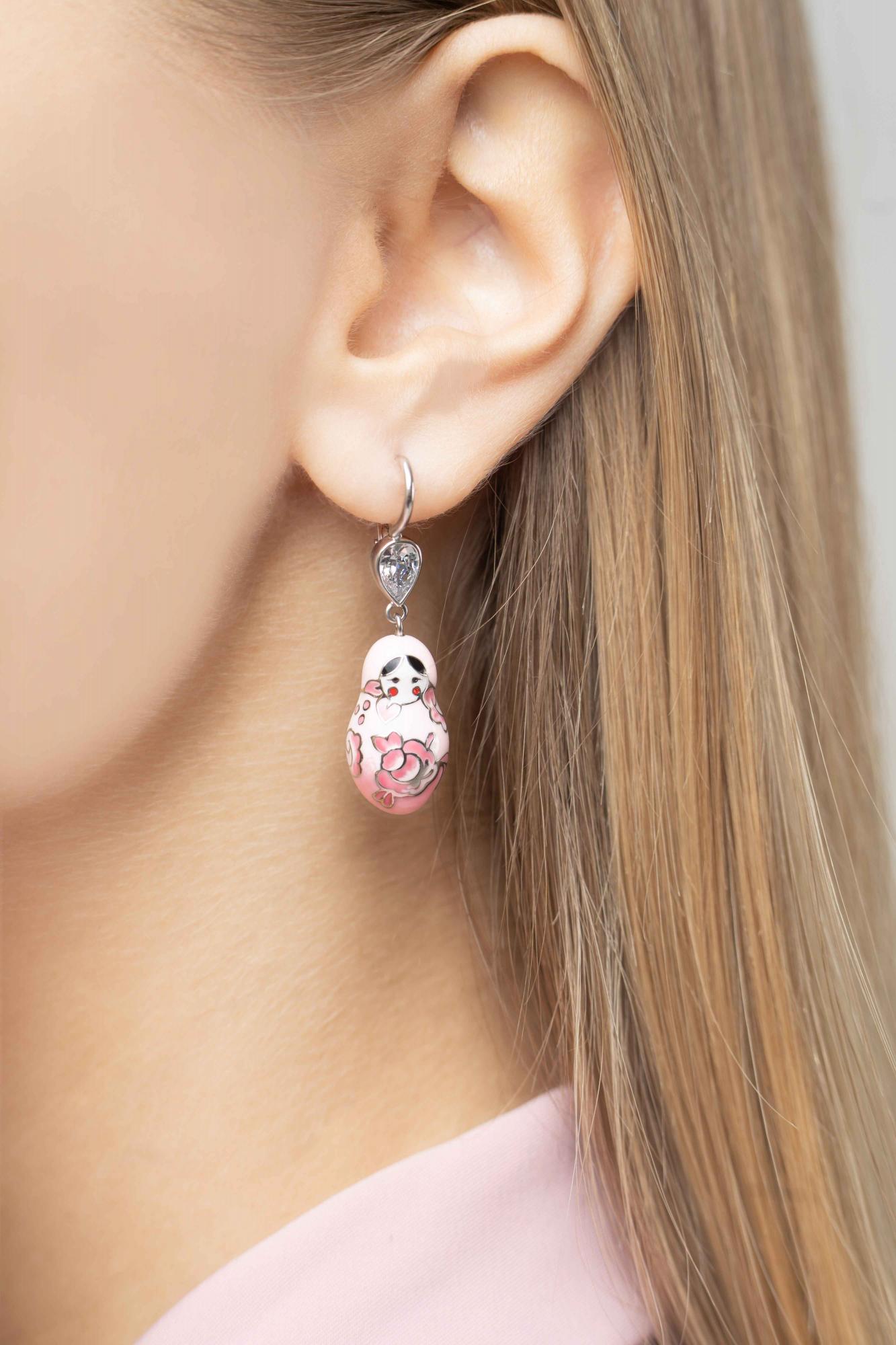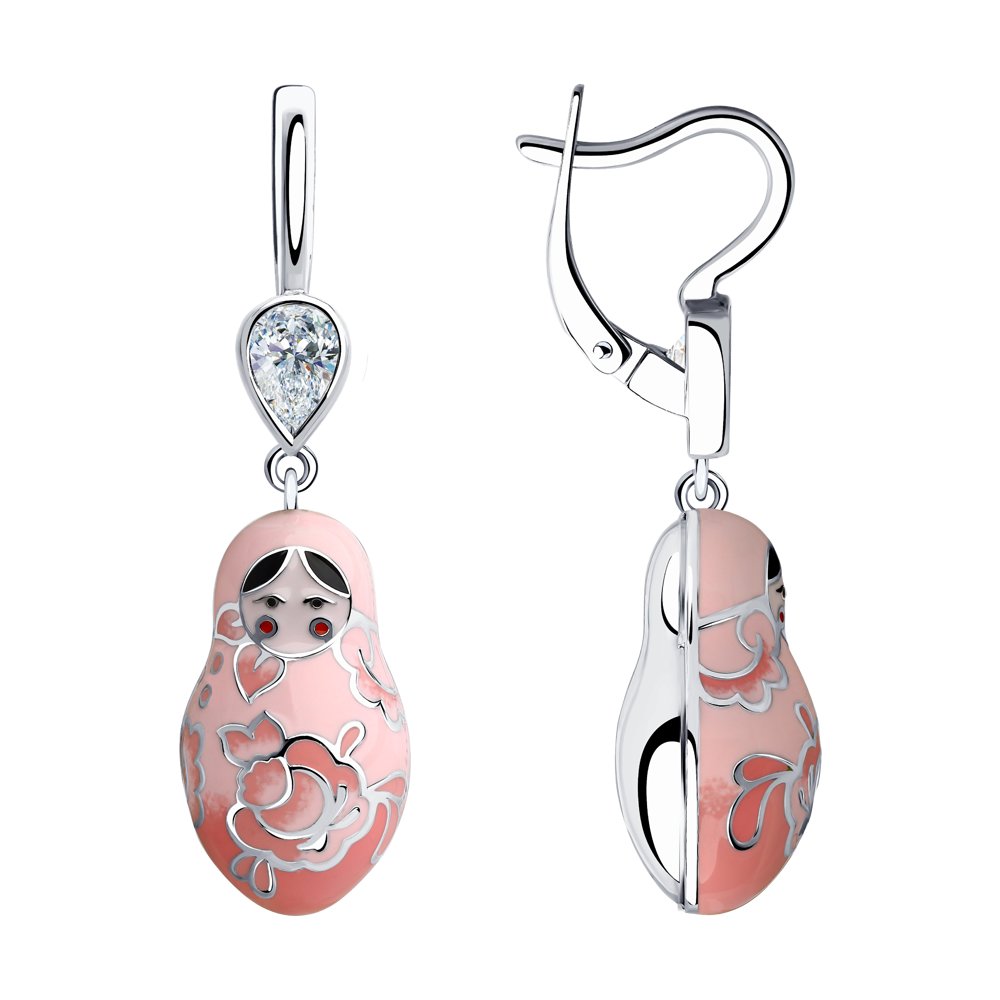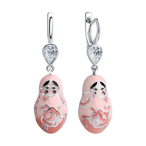 Серебряные серьги SOKOLOV с фианитом и эмалью 94023535