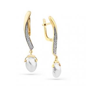 Серьги из лимонного золота Мастер Бриллиант с бриллиантом и жемчугом 06M2-308447-00-28