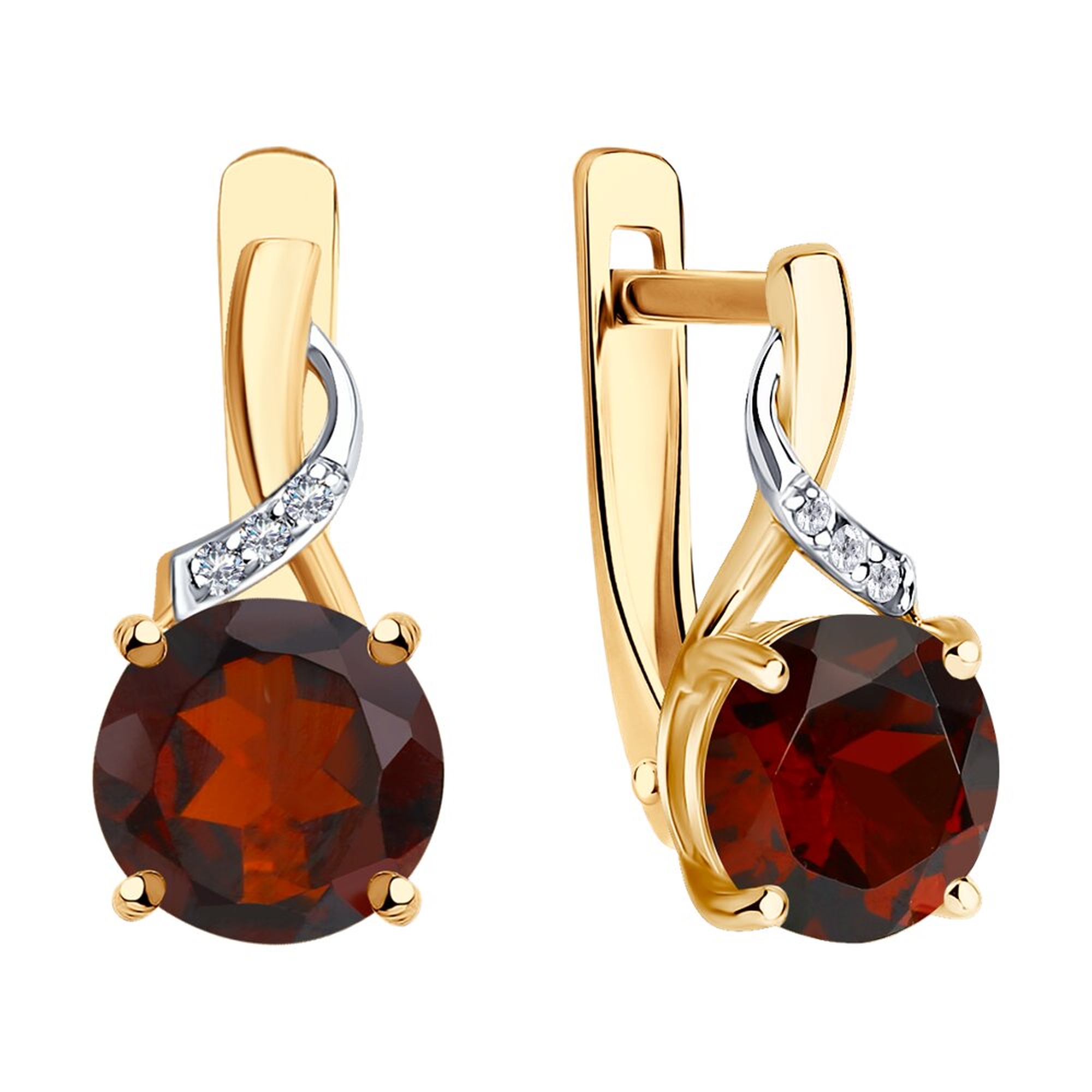 Золотые серьги SOKOLOV с бриллиантом и гранатом 72-00008