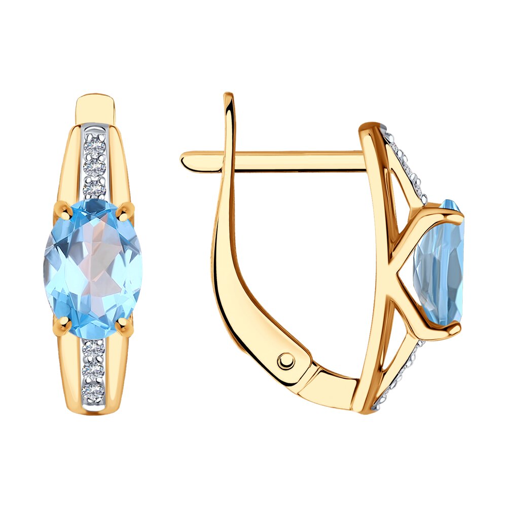 Золотые серьги SOKOLOV с топазом и фианитом 728140