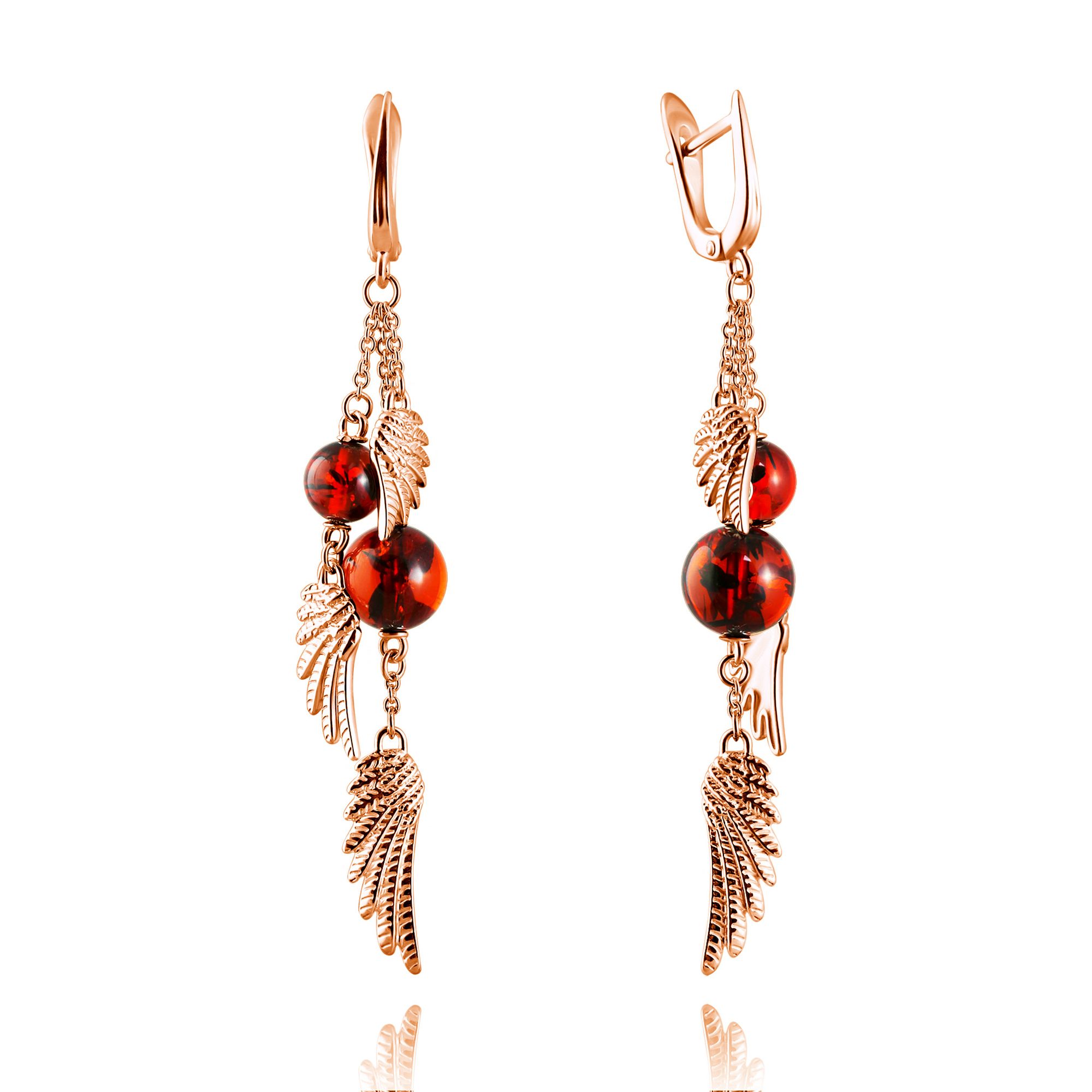 Серьги из золочёного серебра Дарвин с янтарём 129042080hm-к