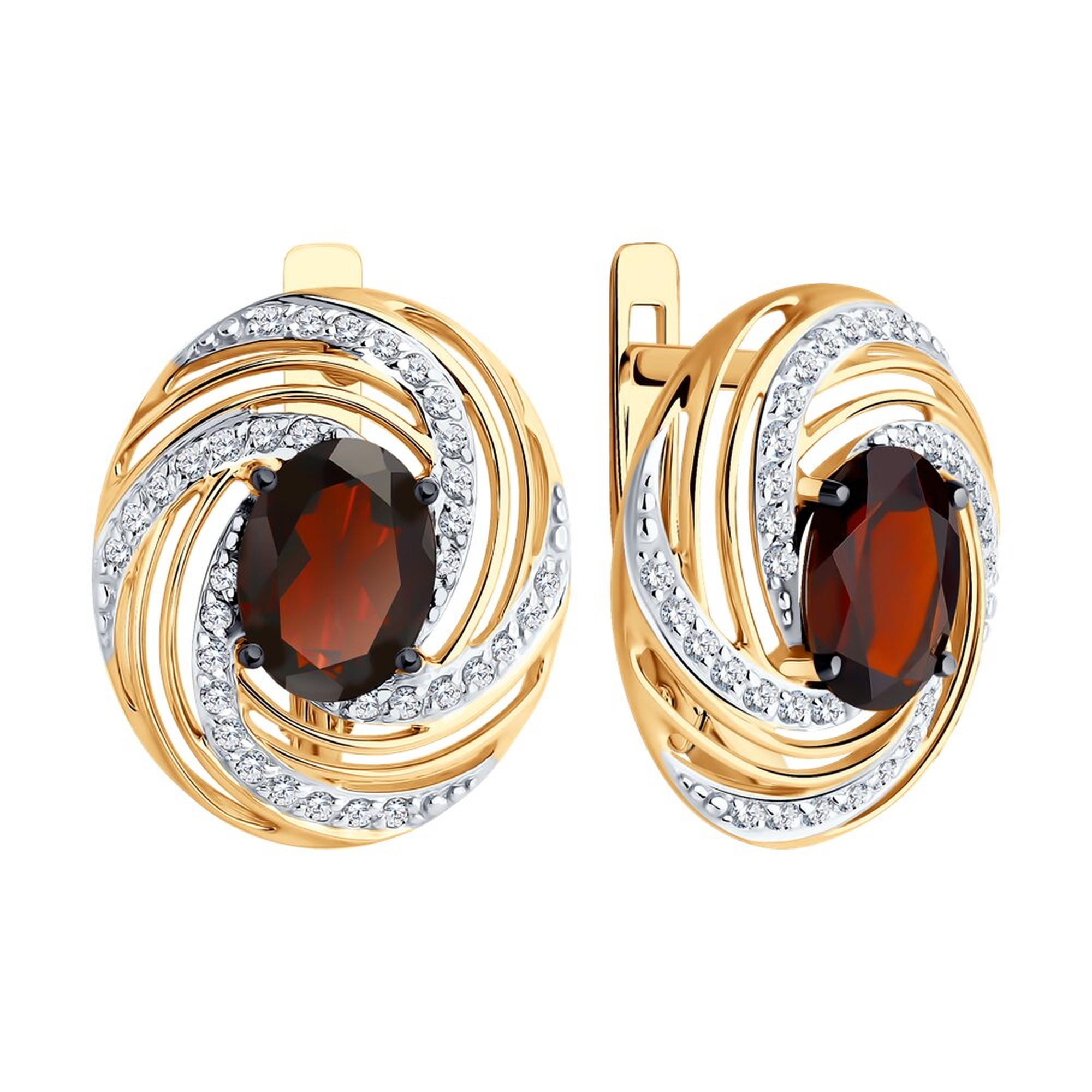 Золотые серьги SOKOLOV с фианитом и гранатом 51-320-02317-1