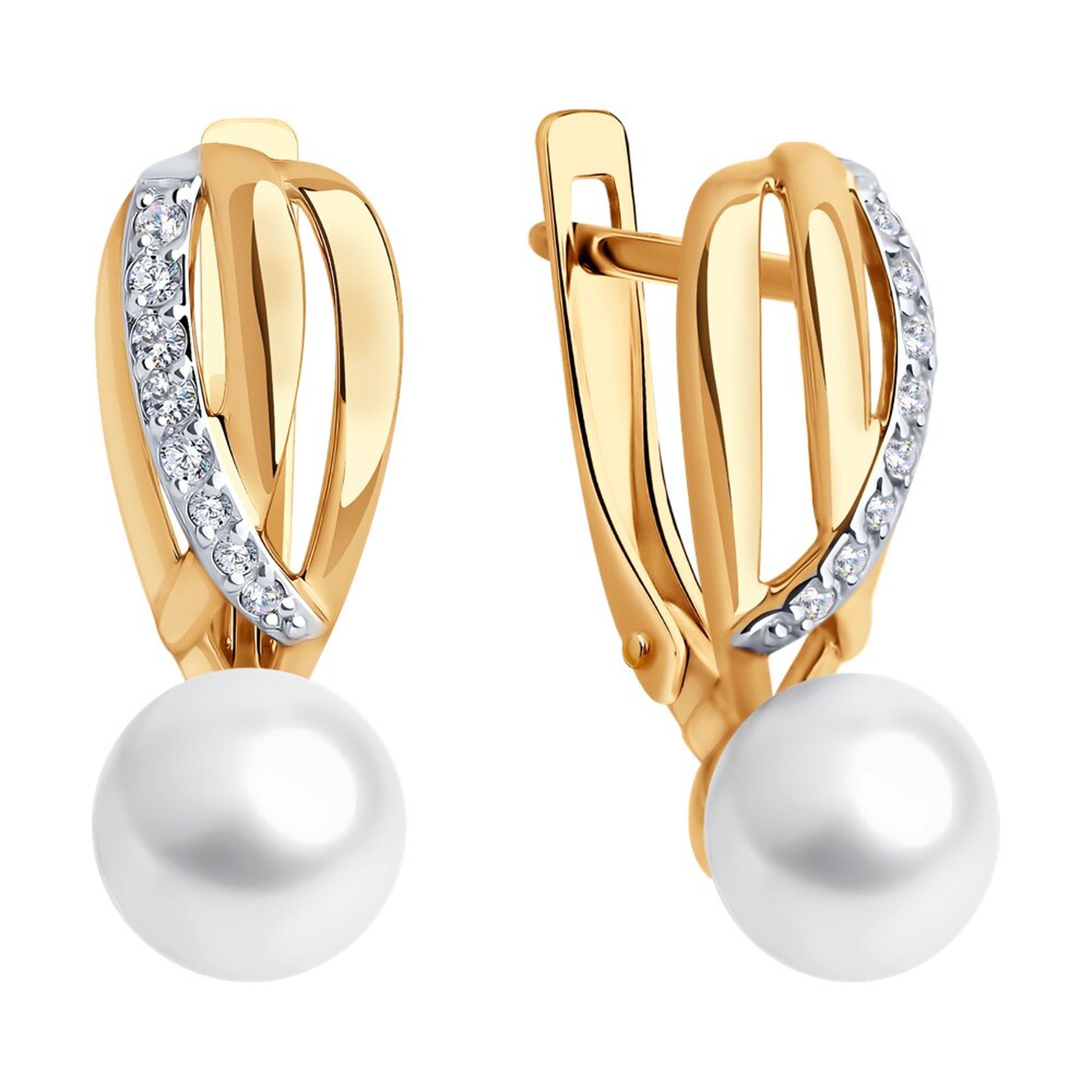 Золотые серьги SOKOLOV с фианитом и жемчугом 51-320-02277-1