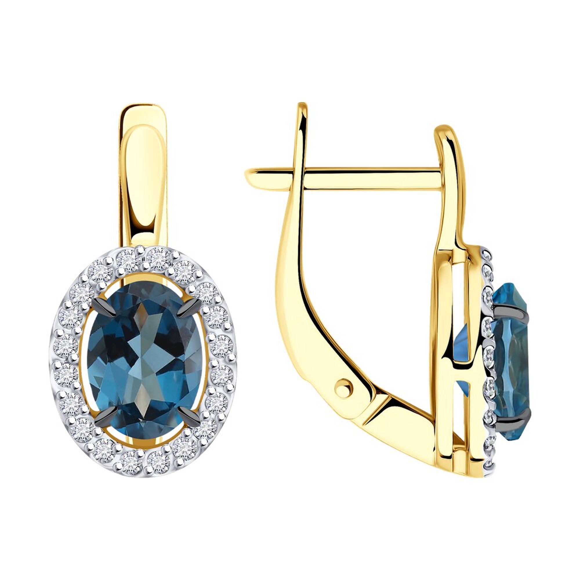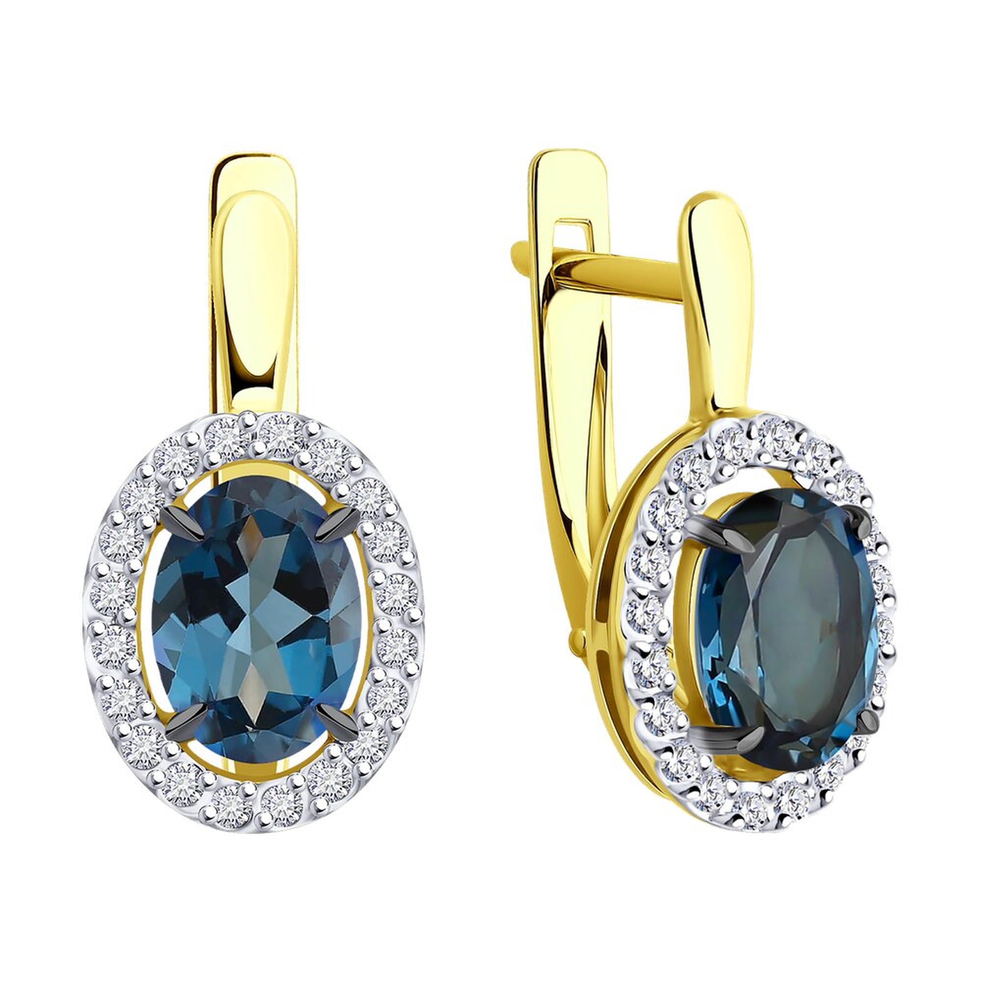 Золотые серьги SOKOLOV с фианитом и Лондон топазом 53-320-02049-2