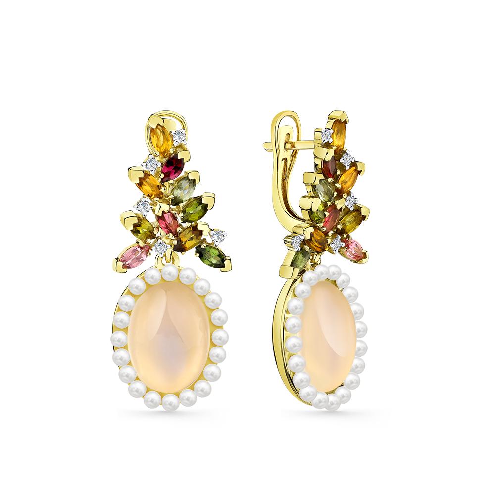 Серьги из лимонного золота Мастер Бриллиант с бриллиантом,жемчугом,турмалином и лунным камнем 06M2-308785-00-55