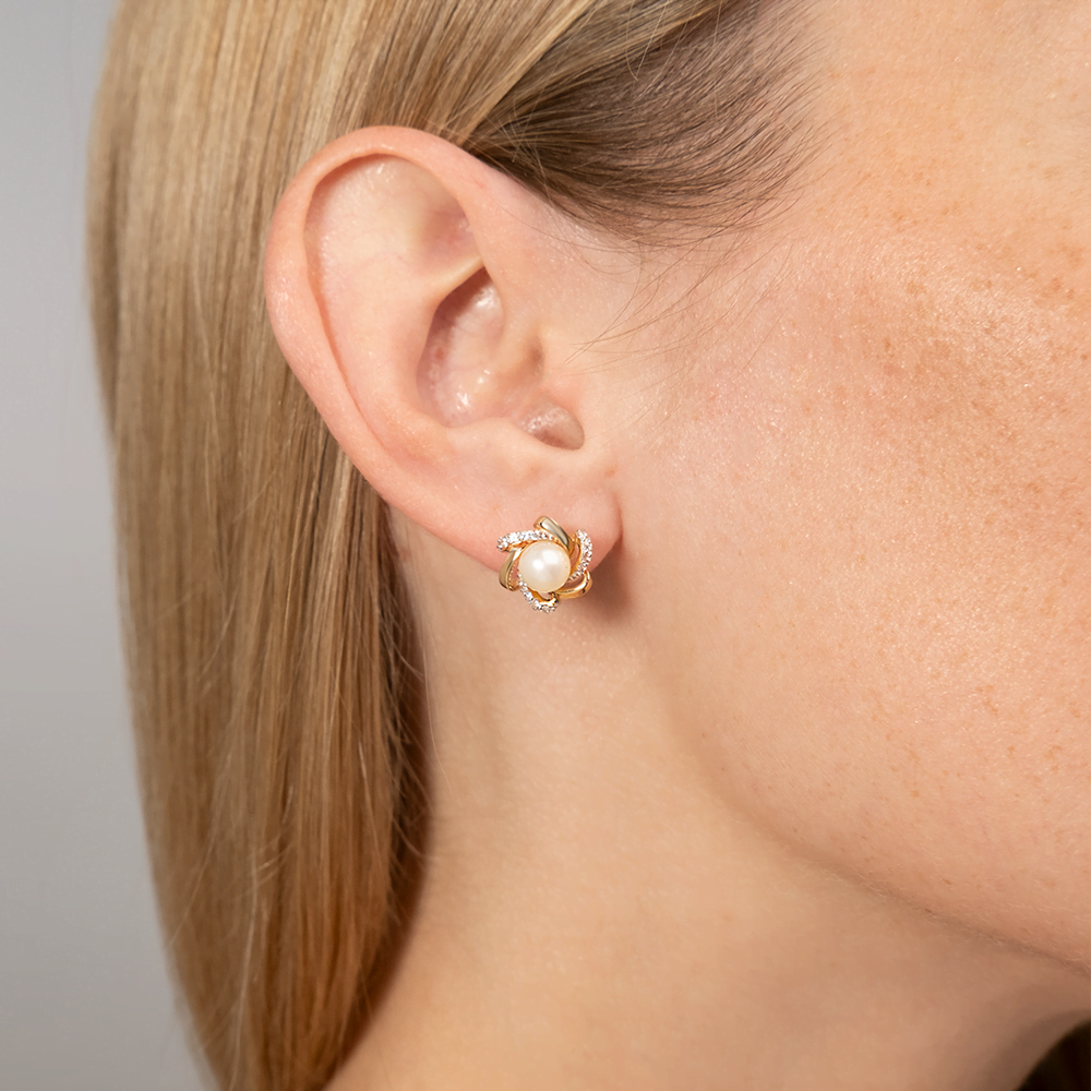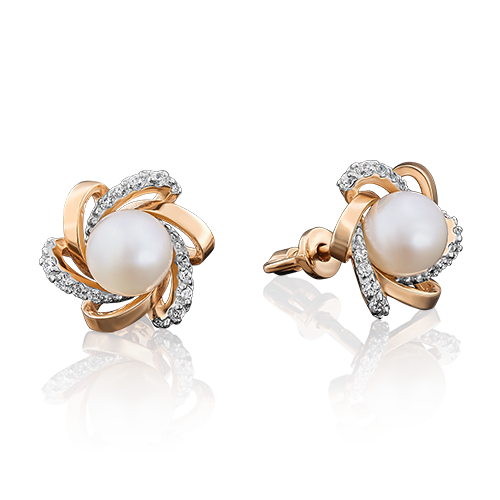 Золотые серьги Platina с фианитом и жемчугом 02-3242-00-302-1110-24