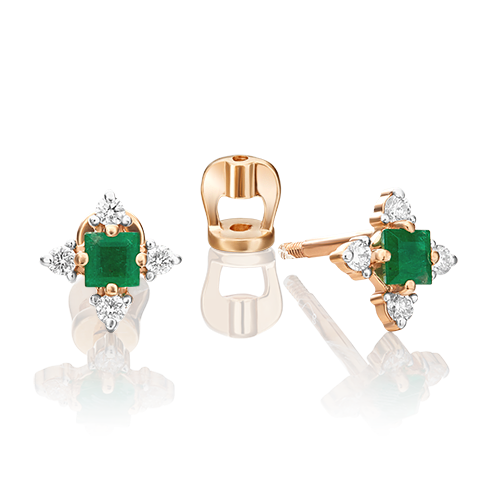 Золотые серьги Platina с бриллиантом и изумрудом 02-0876-00-106-1110-30