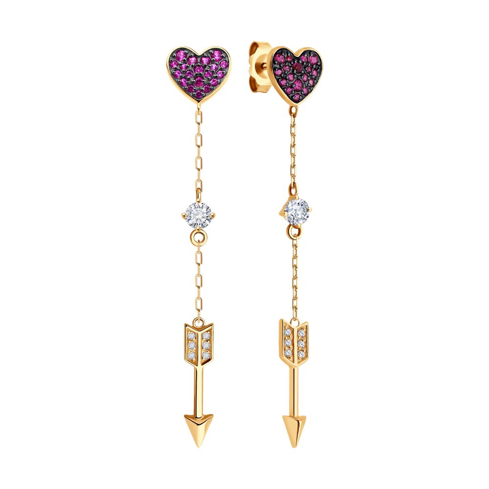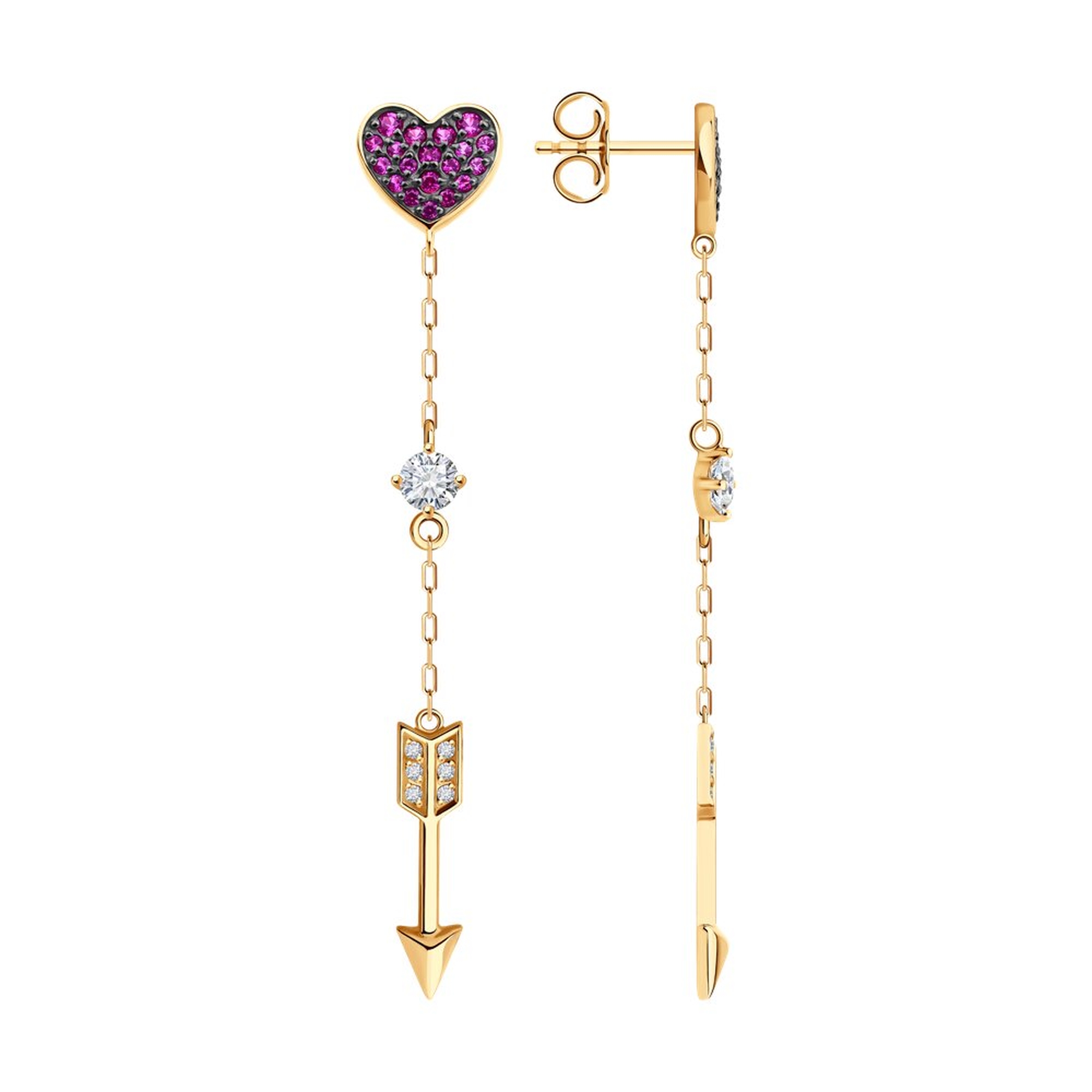 Золотые серьги SOKOLOV с фианитом и рубиновым корундом 0200524