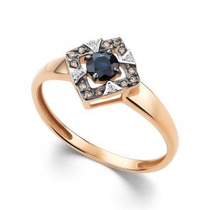 Золотые серьги АЛЬКОР с бриллиантом и сапфиром 25836-170