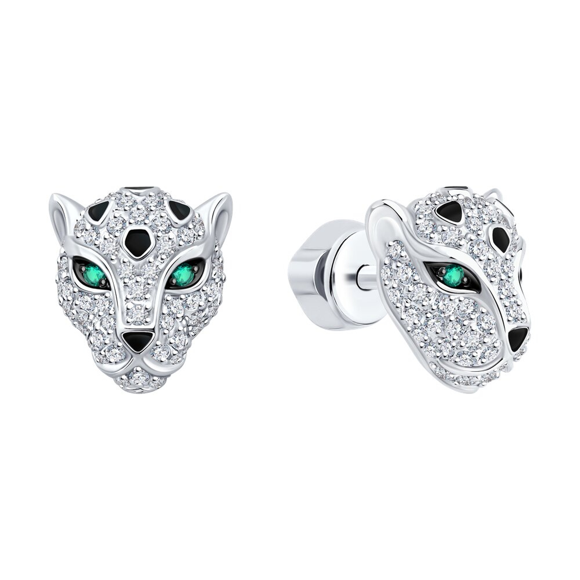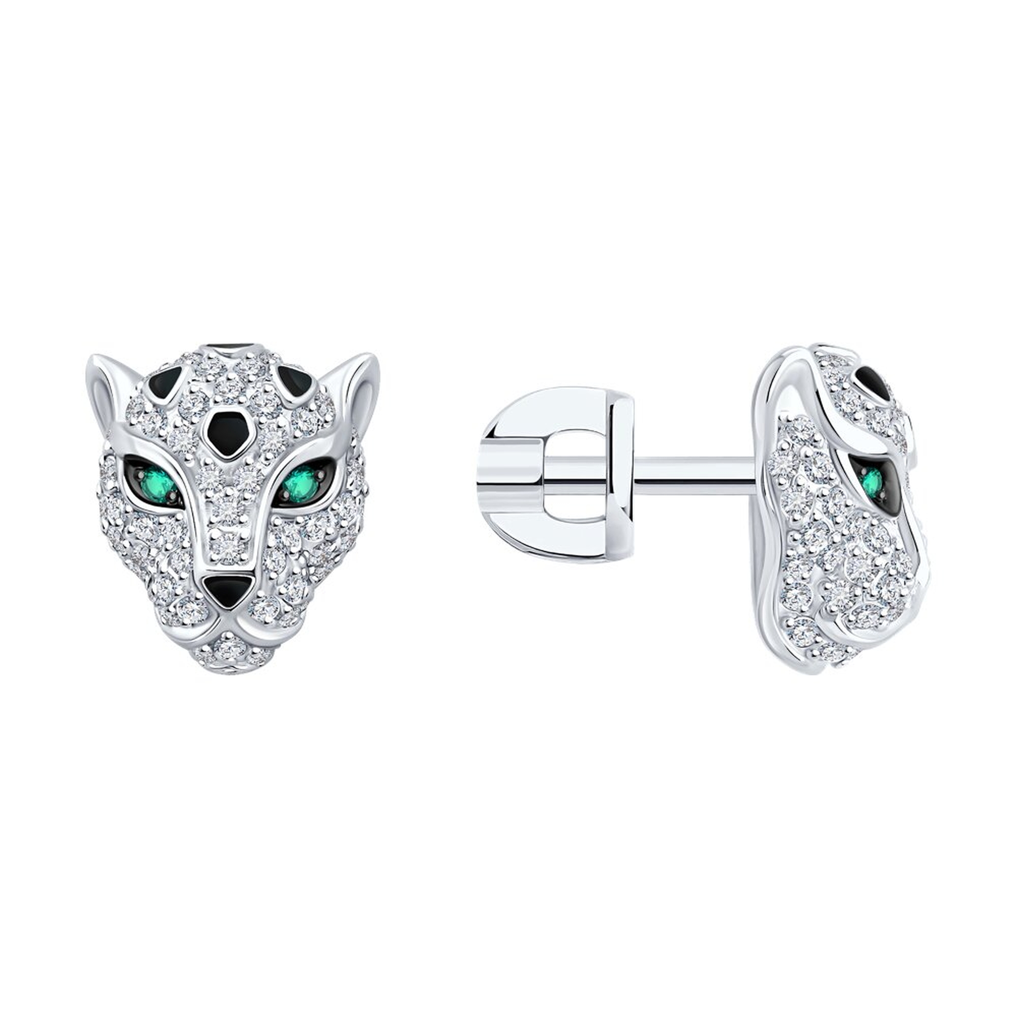 Золотые серьги SOKOLOV с бриллиантом, изумрудом и эмалью 3020683-3