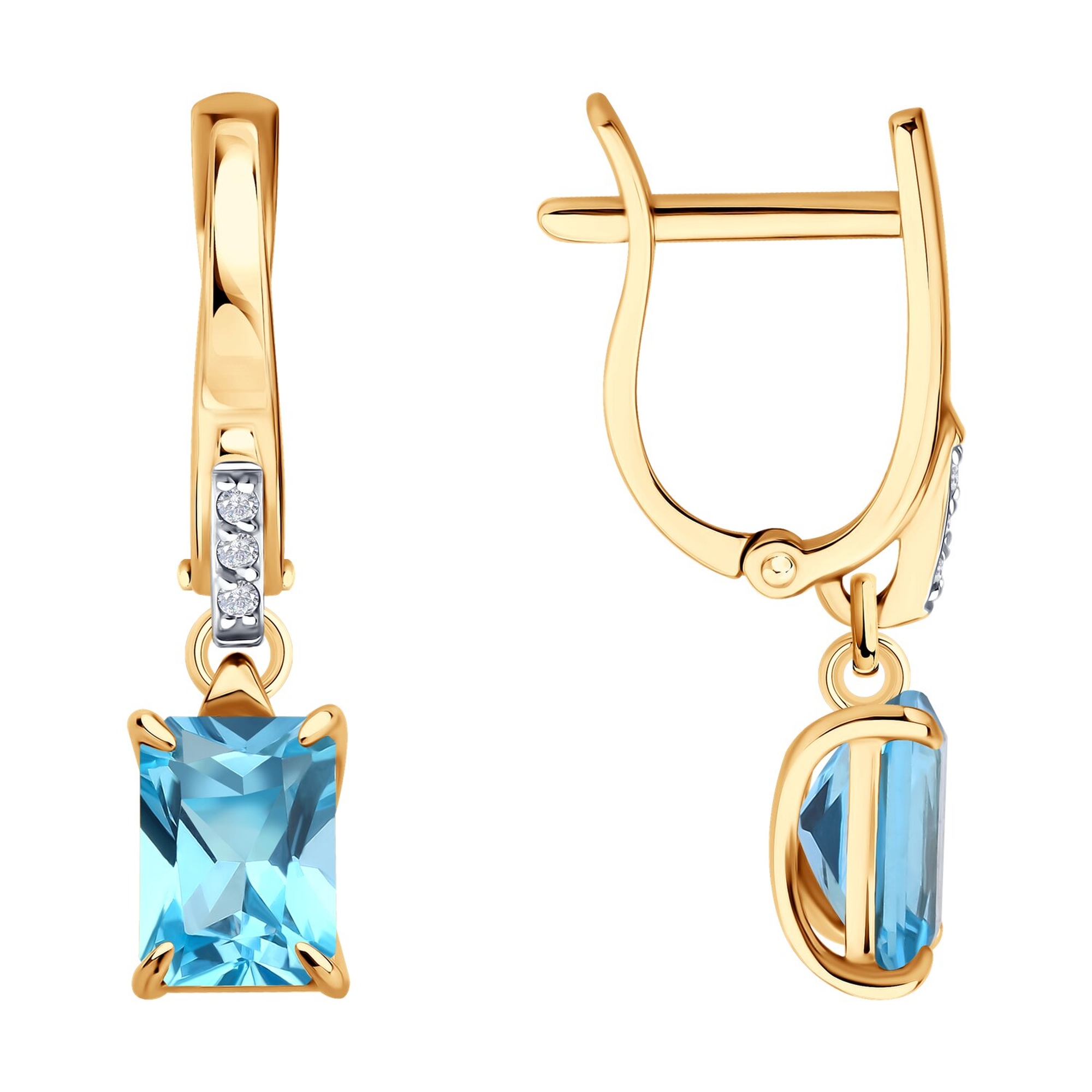 Золотые серьги SOKOLOV с топазом и фианитом 729029