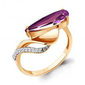 Серьги из золочёного серебра AQUAMARINE с фианитом и аметистом А4792184А-п