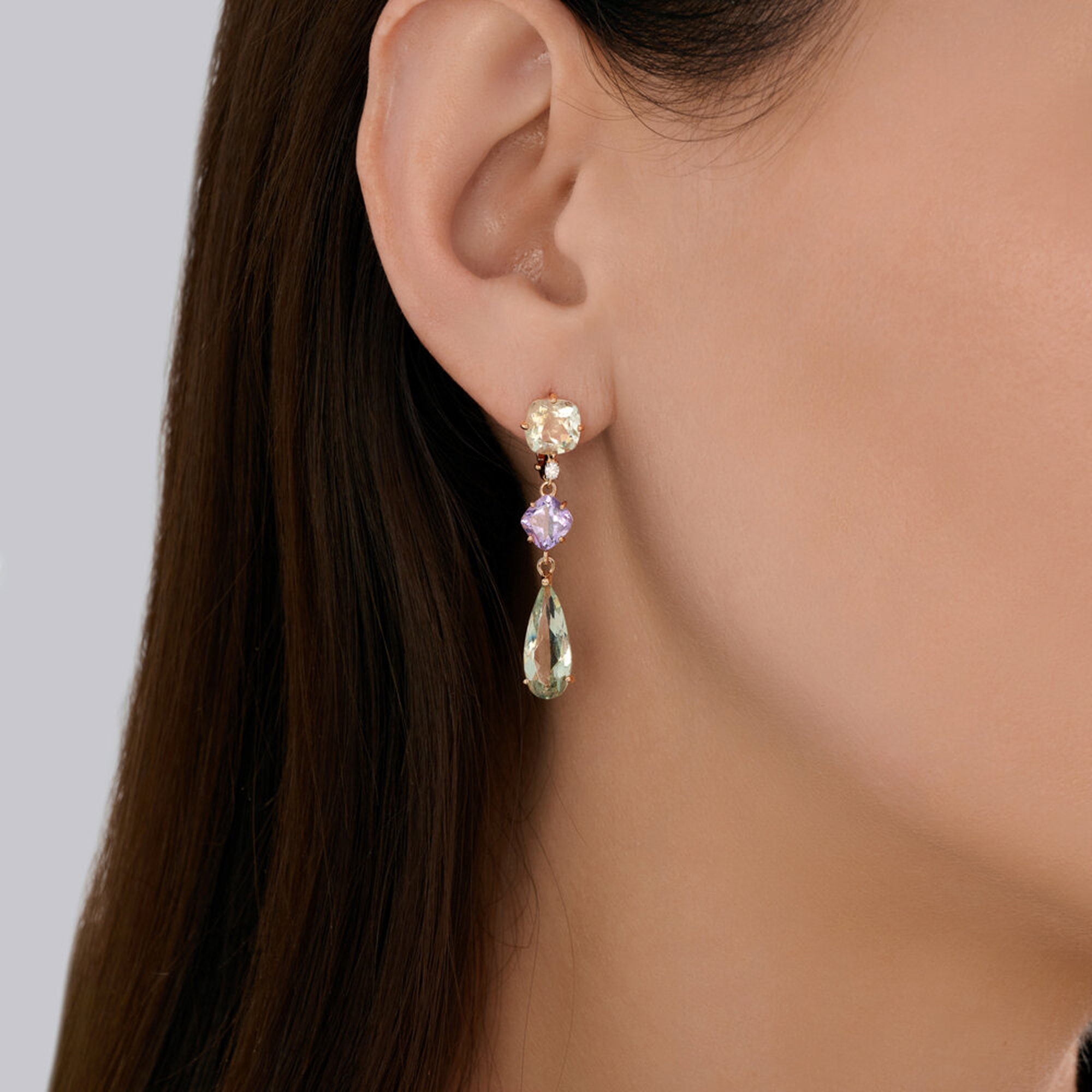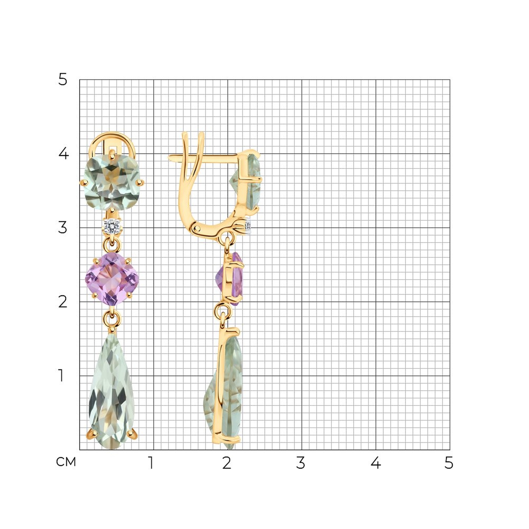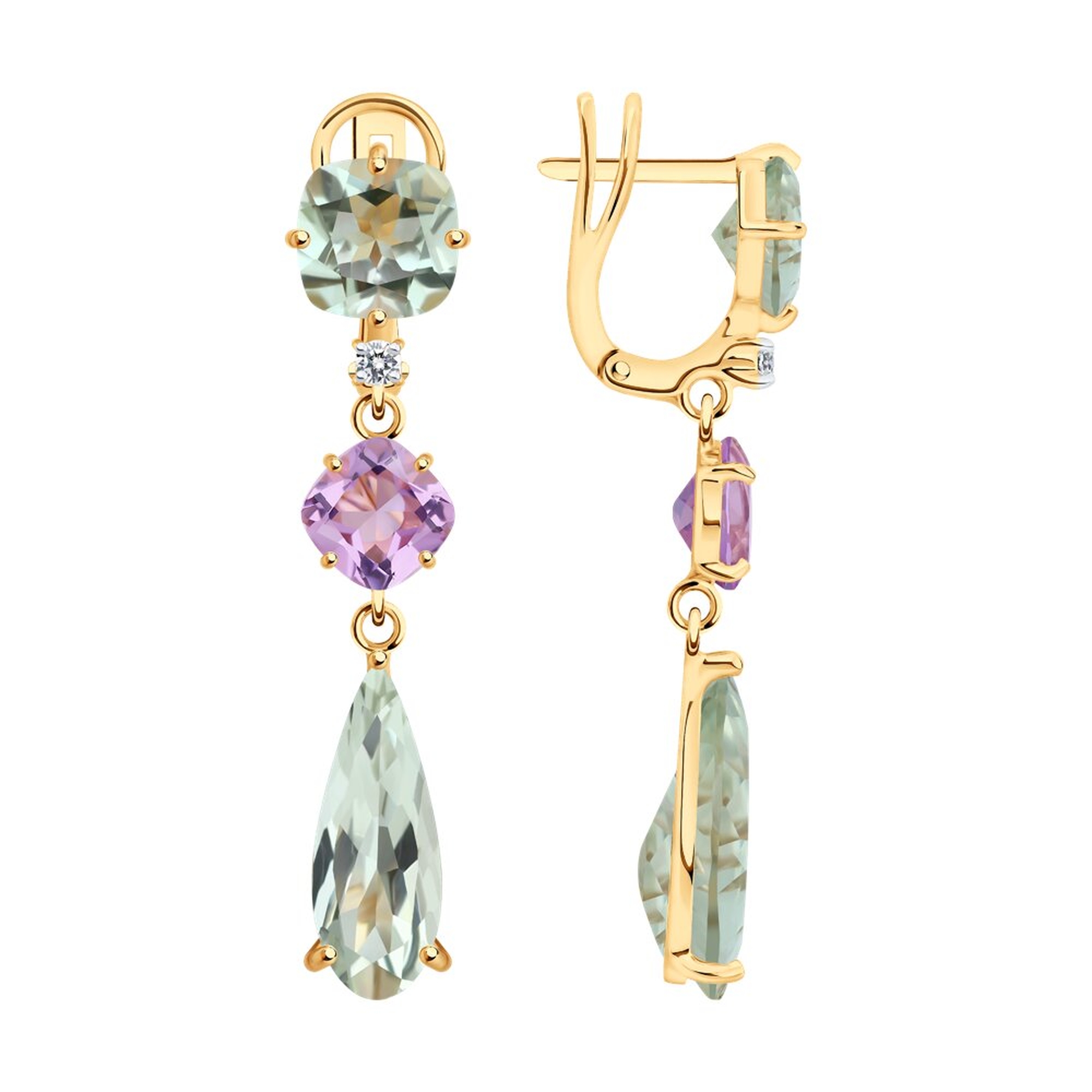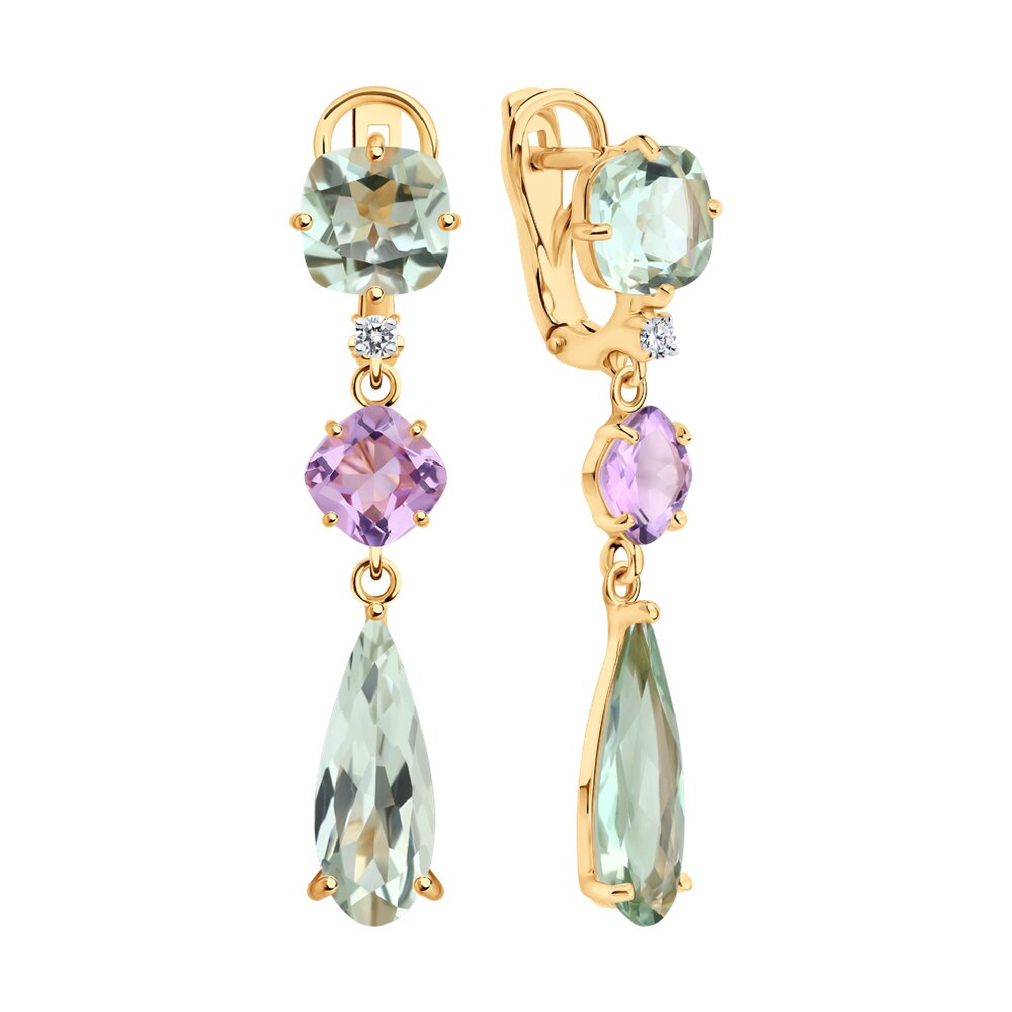 Золотые серьги SOKOLOV с аметистом, празиолитом и бриллиантом выращенным 72-00449