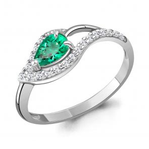 Серебряные серьги AQUAMARINE с фианитом и гидротермальным изумрудом А400324АГ