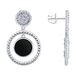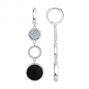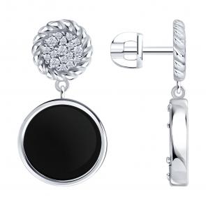 Серебряные серьги Diamant с фианитом, агатом и перламутром 94-322-02320-1