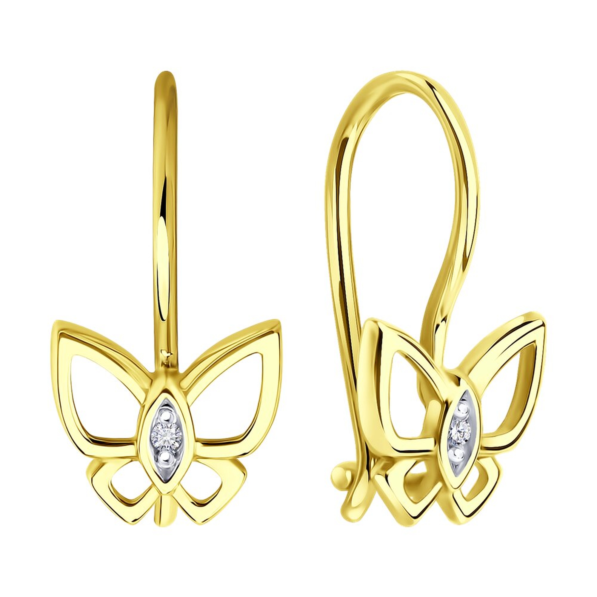 Серьги из лимонного золота Diamant с фианитом 53-120-02808-1