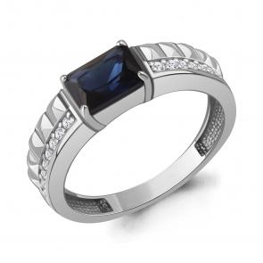 Серебряные серьги AQUAMARINE с фианитом и гидротермальным сапфиром А400656АБ