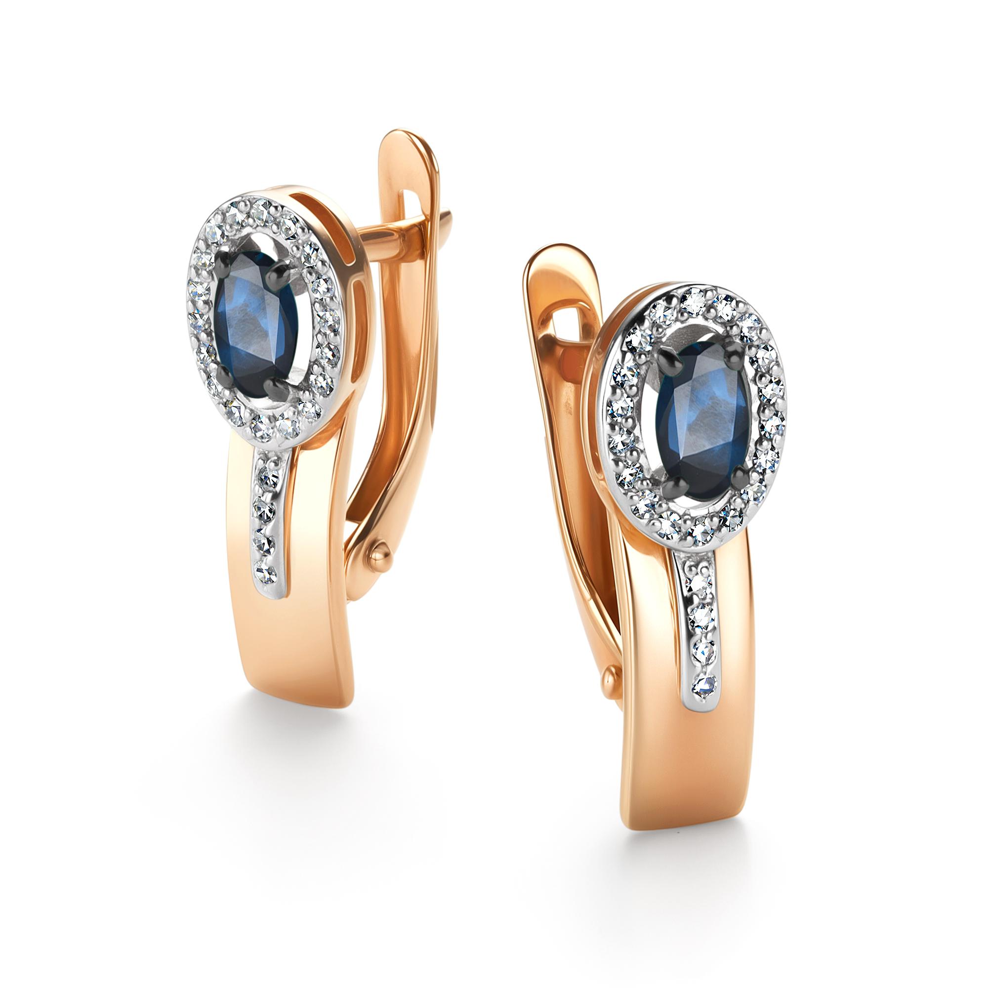 Золотые серьги АЛЬКОР с бриллиантом и сапфиром 26432-102