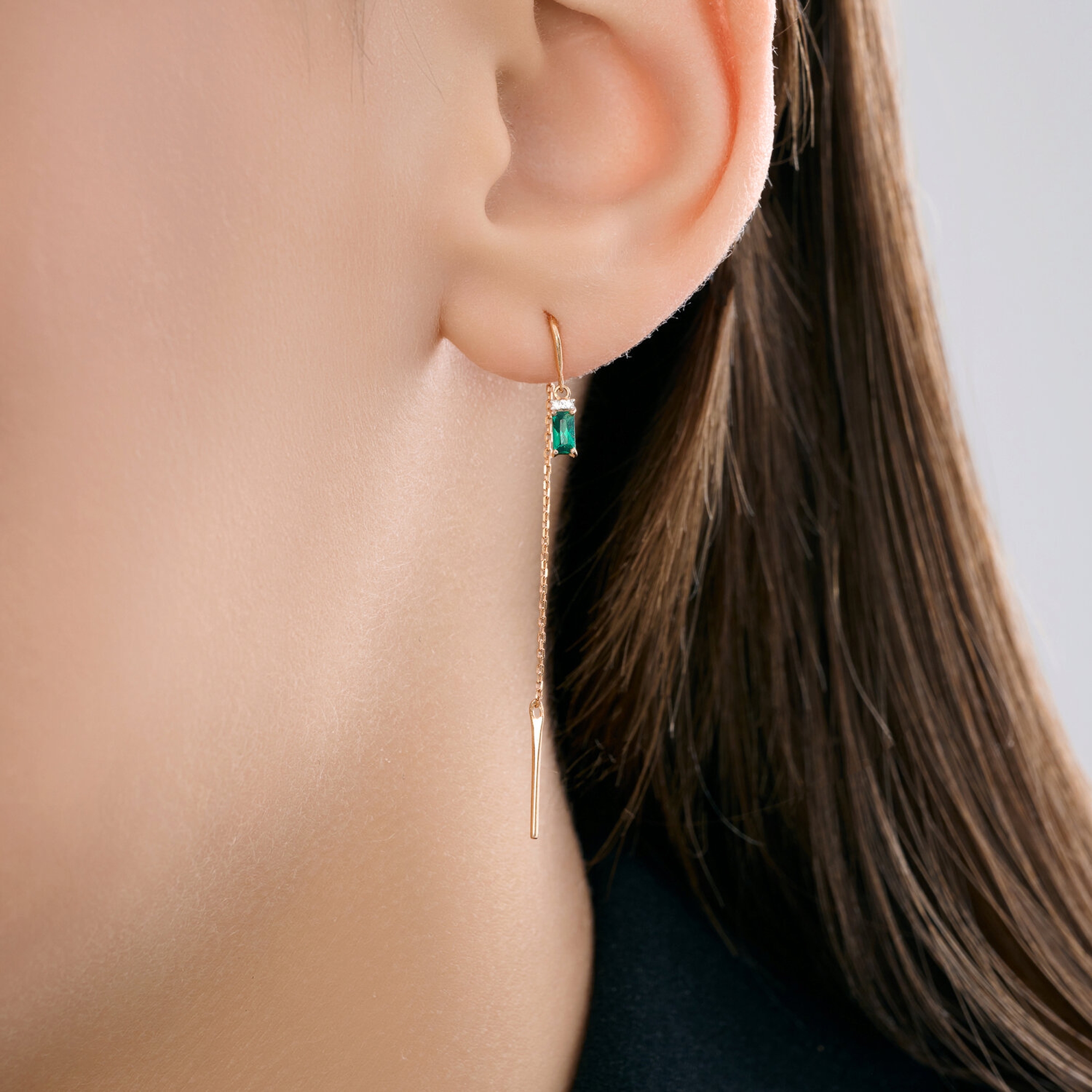 Золотые серьги SOKOLOV с бриллиантом и гидротермальным изумрудом 72-00487