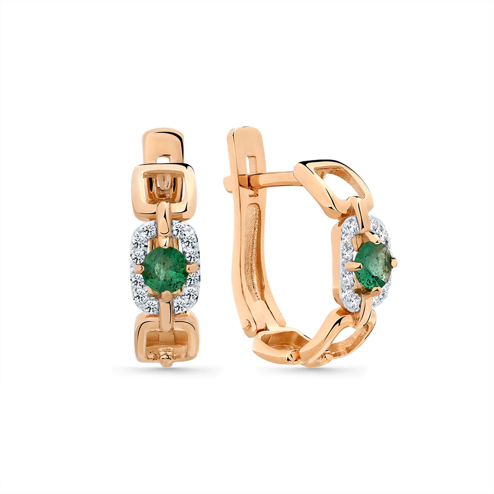 Золотые серьги Мастер Бриллиант с бриллиантом и изумрудом 01M2-109058-01-01