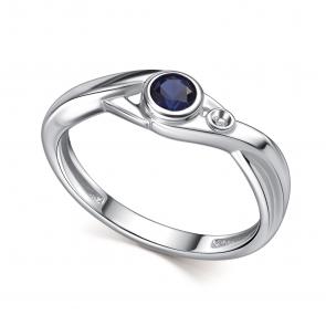 Серебряные серьги АЛЬКОР с бриллиантом и гидротермальным сапфиром 02-4697/БГТС-00