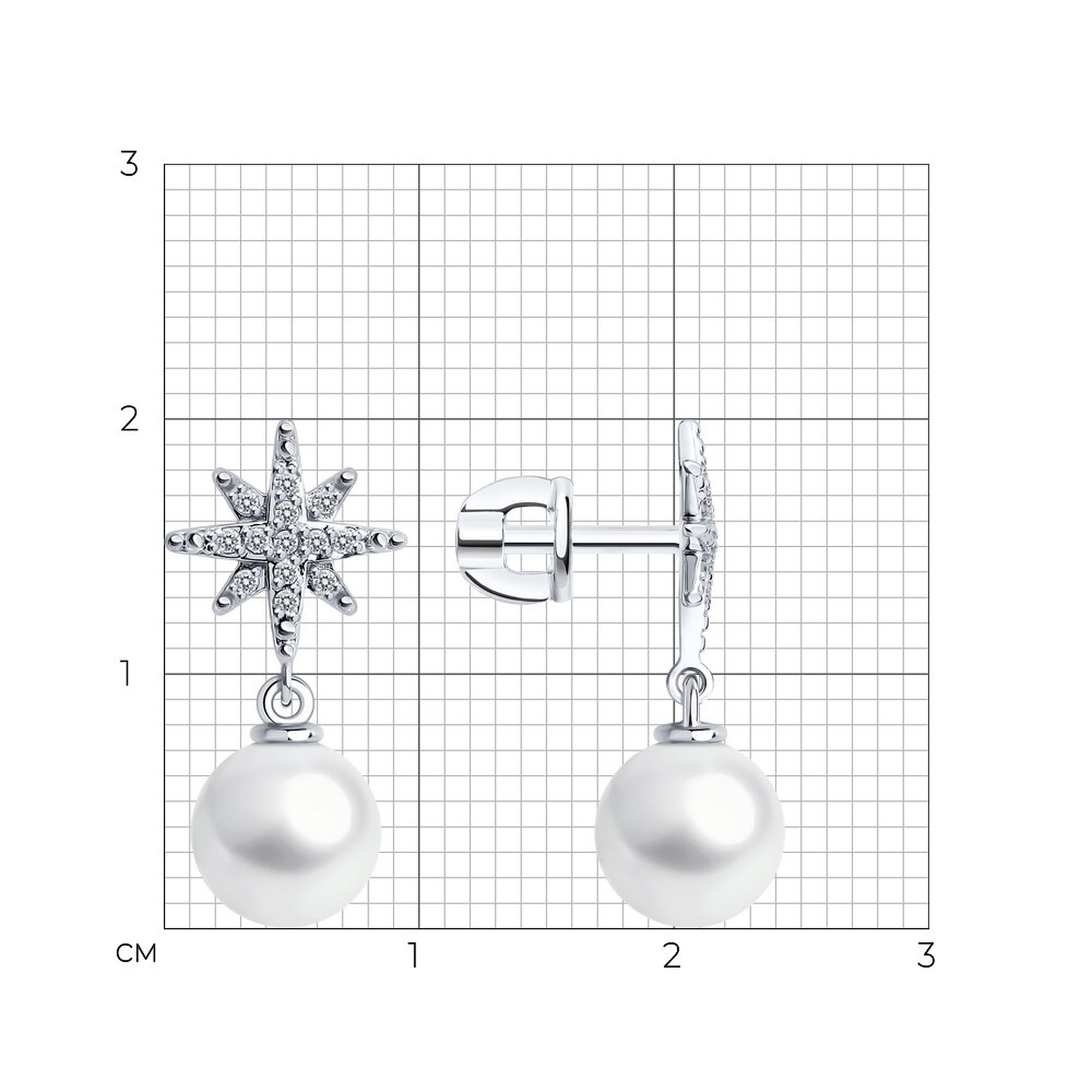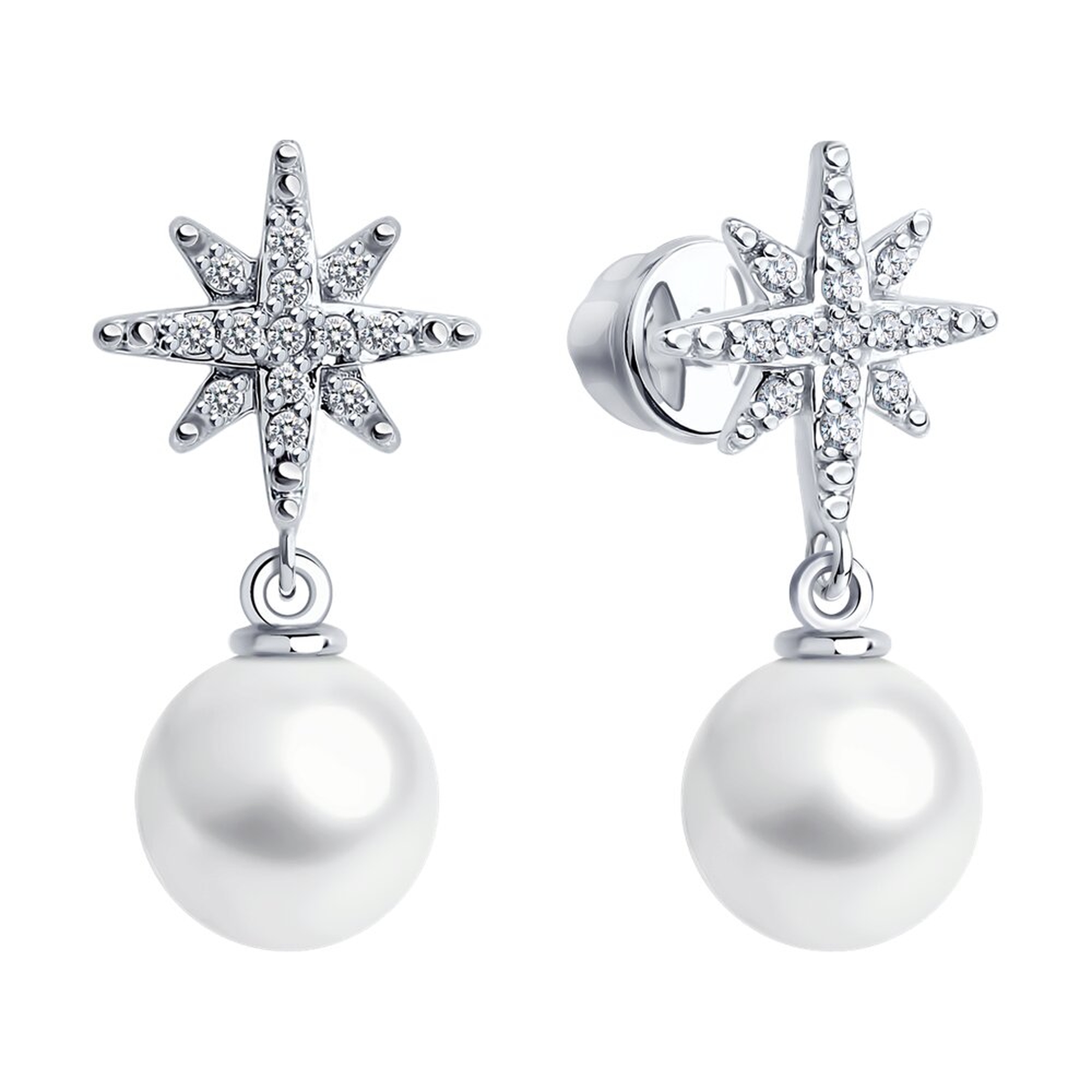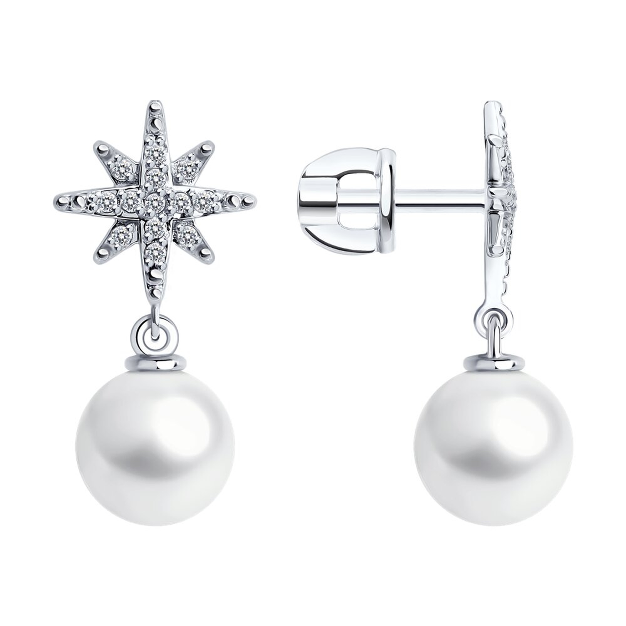 Серьги из белого золота SOKOLOV с бриллиантом и жемчугом 79-20089-3