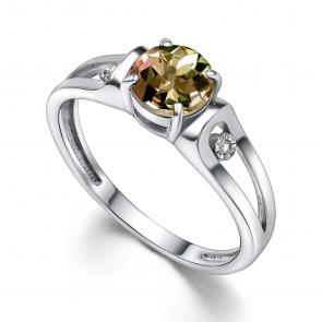 Серебряные серьги АЛЬКОР с бриллиантом и султанитом 02-4342/БРСТ-00